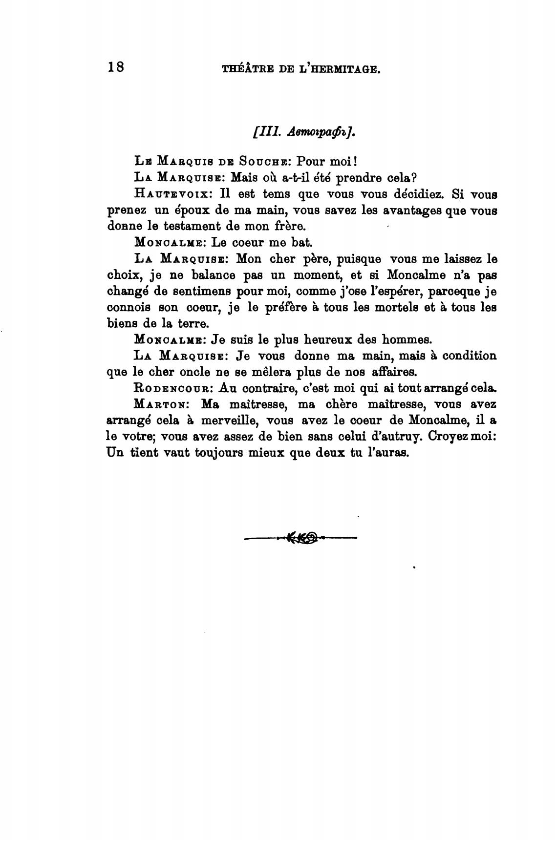 LA MARQUISE: Је vous donne та main, mais condition