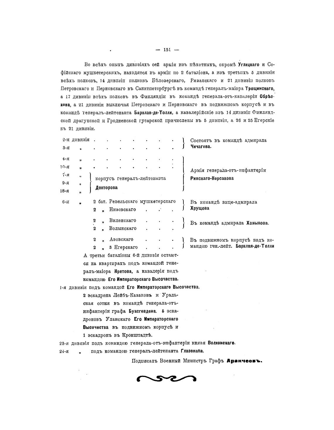 Подиисалъ ВоенннП Министръ Графъ Арвнчеевъ.