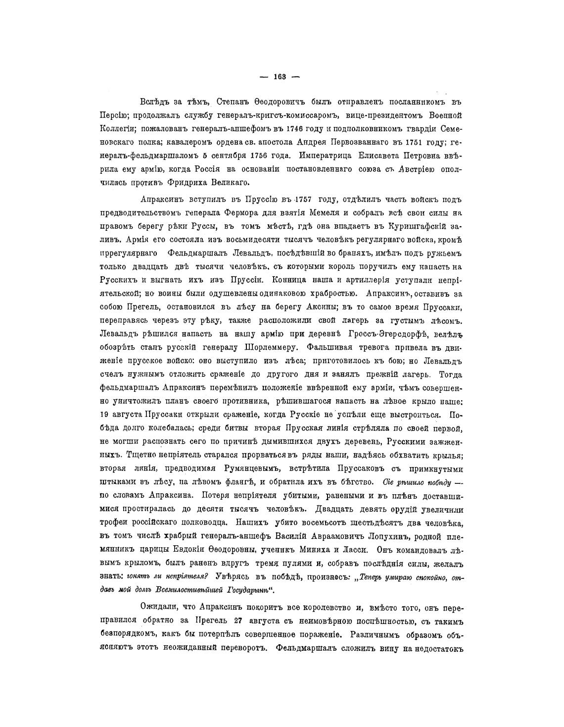 ятельской; но воины были одушевлены одинаковою храбростью. Апраксинъ, оставивъ за