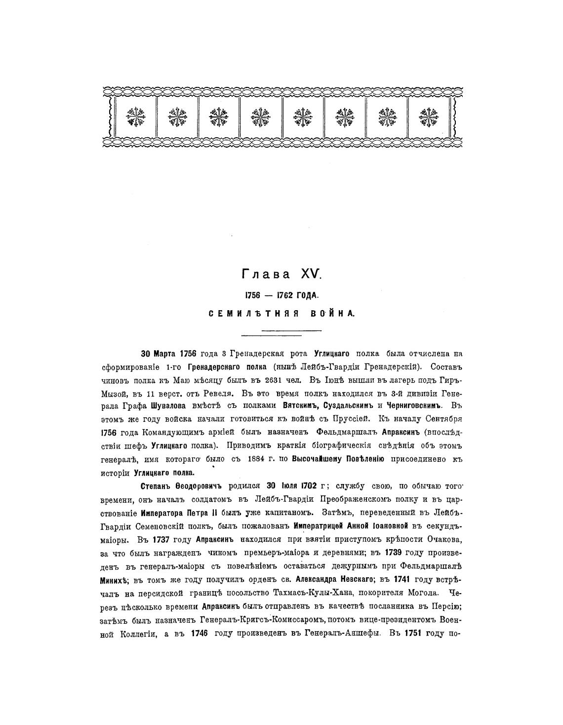 1756 года Командующимъ бнлъ назначень Фельдмаршаль Апрансинъ (впосл±д-