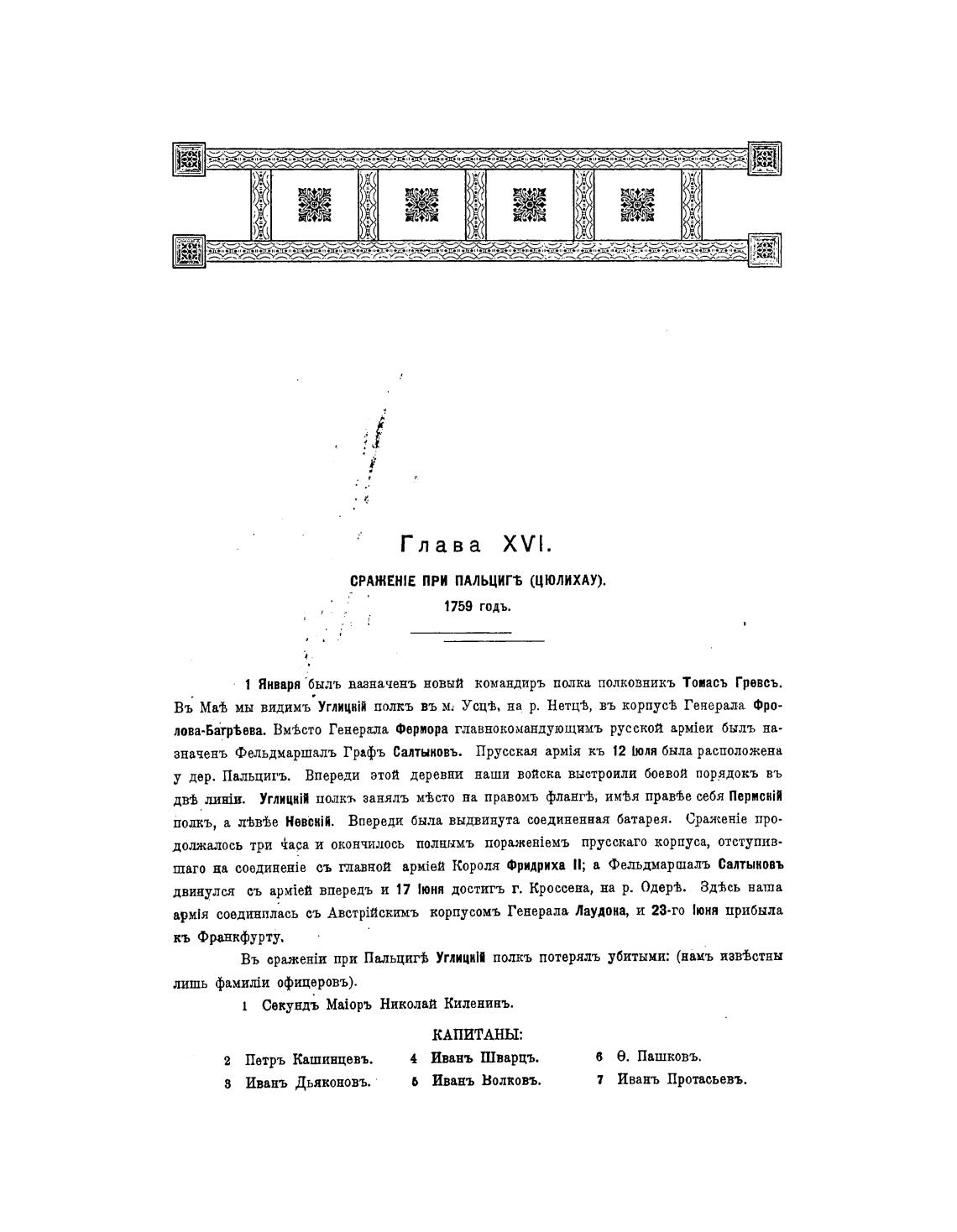 Въ сражеттт при Пальцигь УглициШ полкъ потерялъ убитыми: (намъ изв%стнн