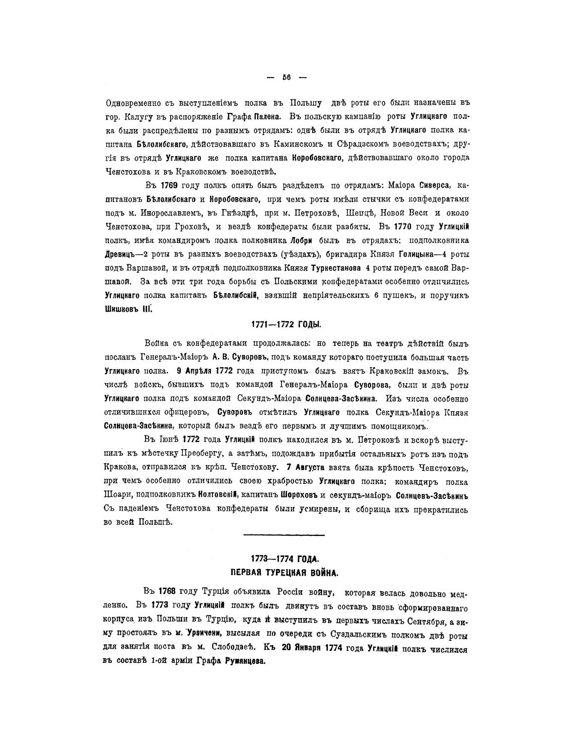 отличившихся офицеровъ, Суворовъ отмћтилъ Углицваго полка Секундъ4Ора Кпяая