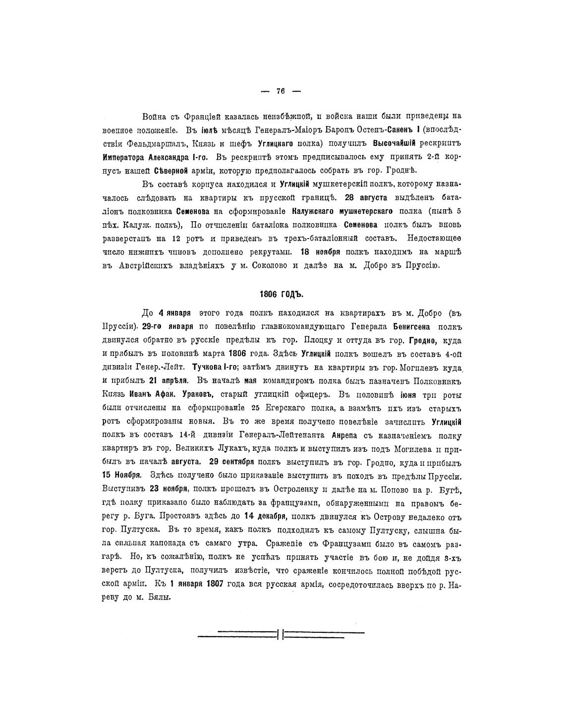 и прибыль въ половишь марта 1806 года. Зд±сь углищйй полкъ вошелъ въ составь 4-ort