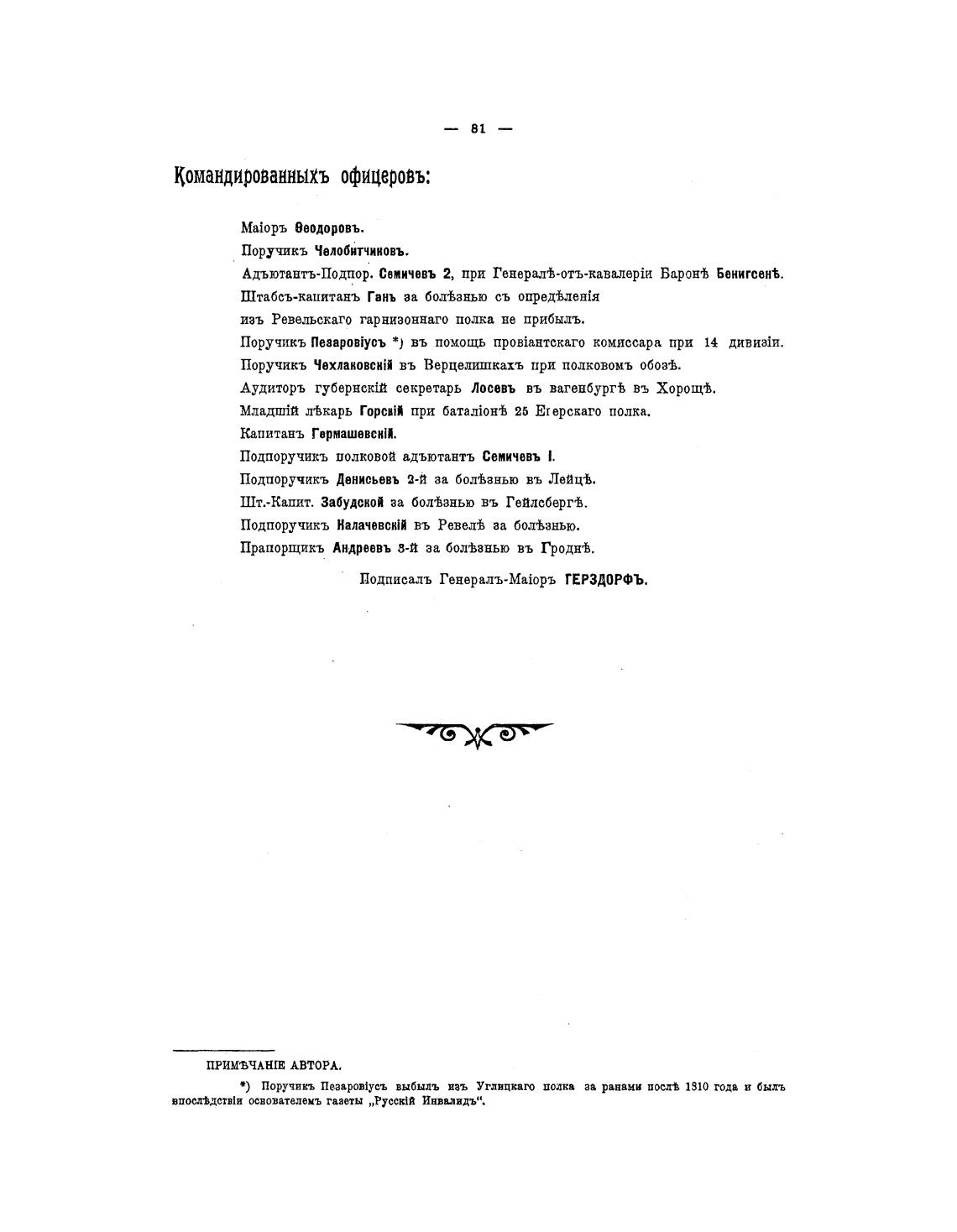 Подписалъ Генералъ-МаЖ)ръ ГЕРЗДОРФЪ.