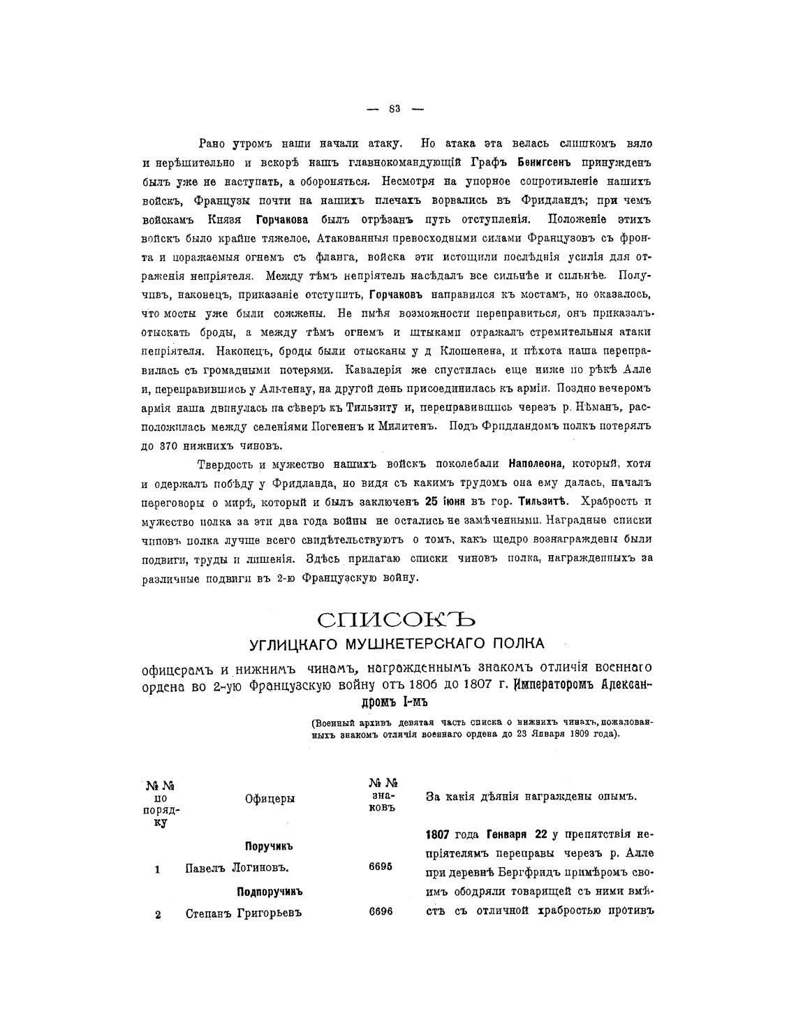 ордена во 2-ую Французскую войну отъ 1806 до 1807 г. Императоромъ Адексан-