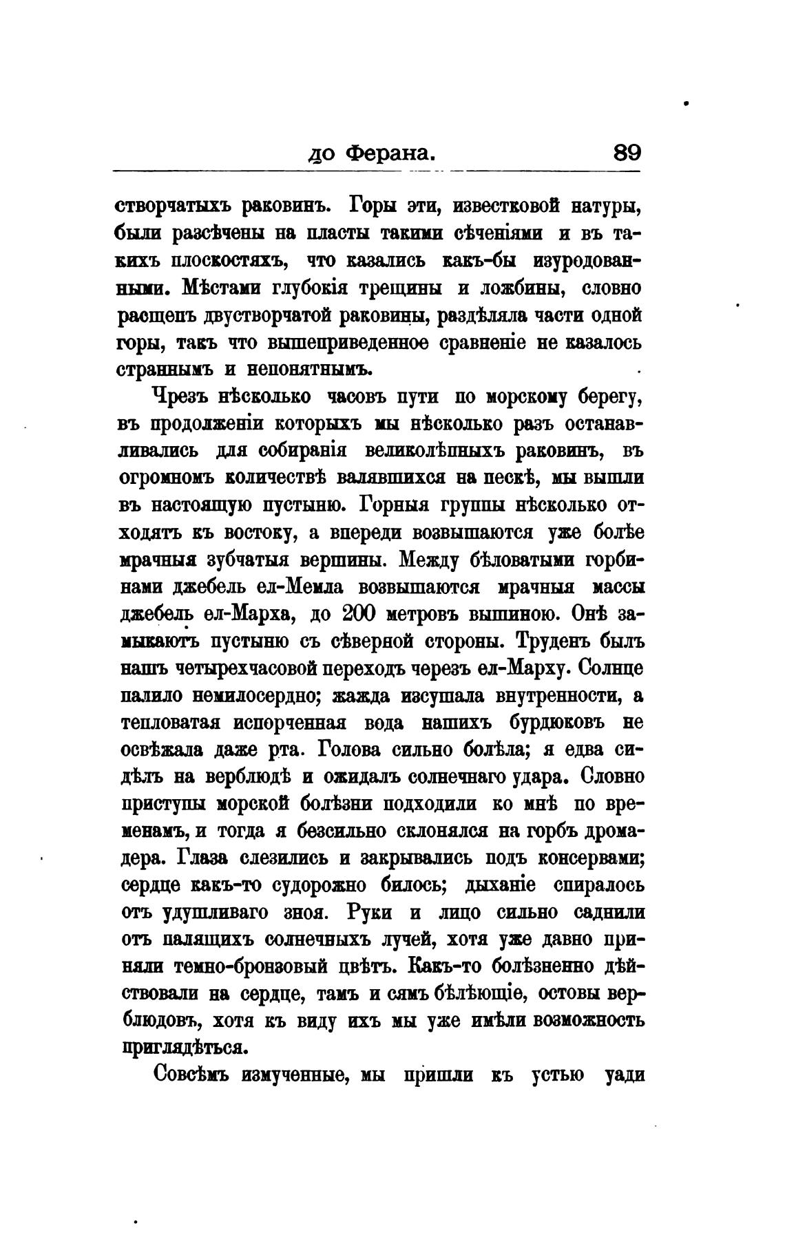 Совс•ьмъ измученные, мы пришли кь устью уади