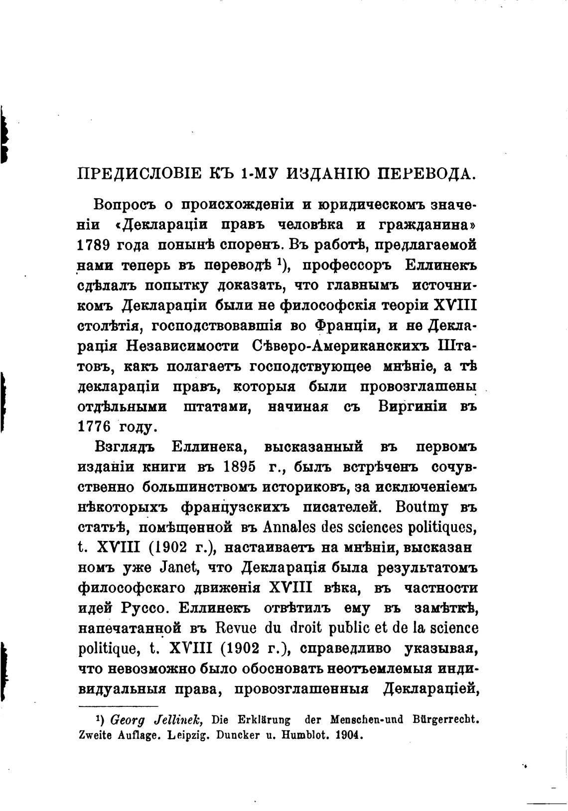 1) Georg Jellinek, Die Erkllrung der Menschen•und Bargerrecht.