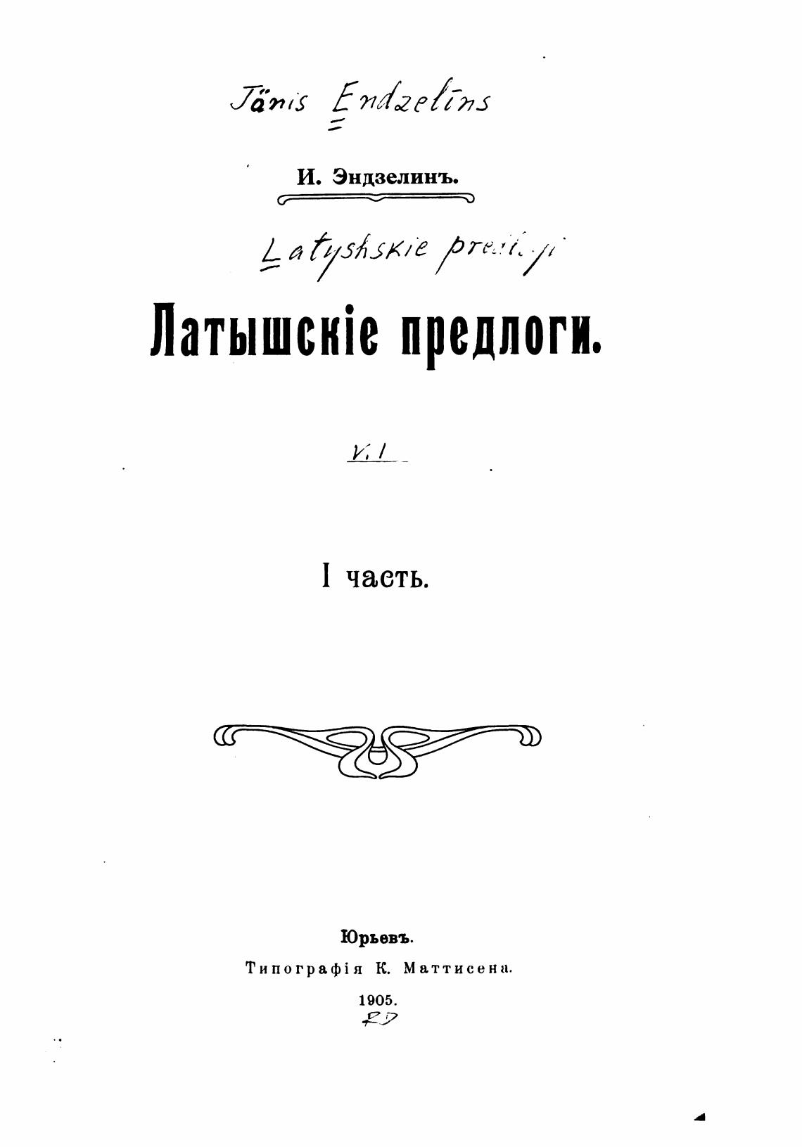 И. Эндзелинъ.