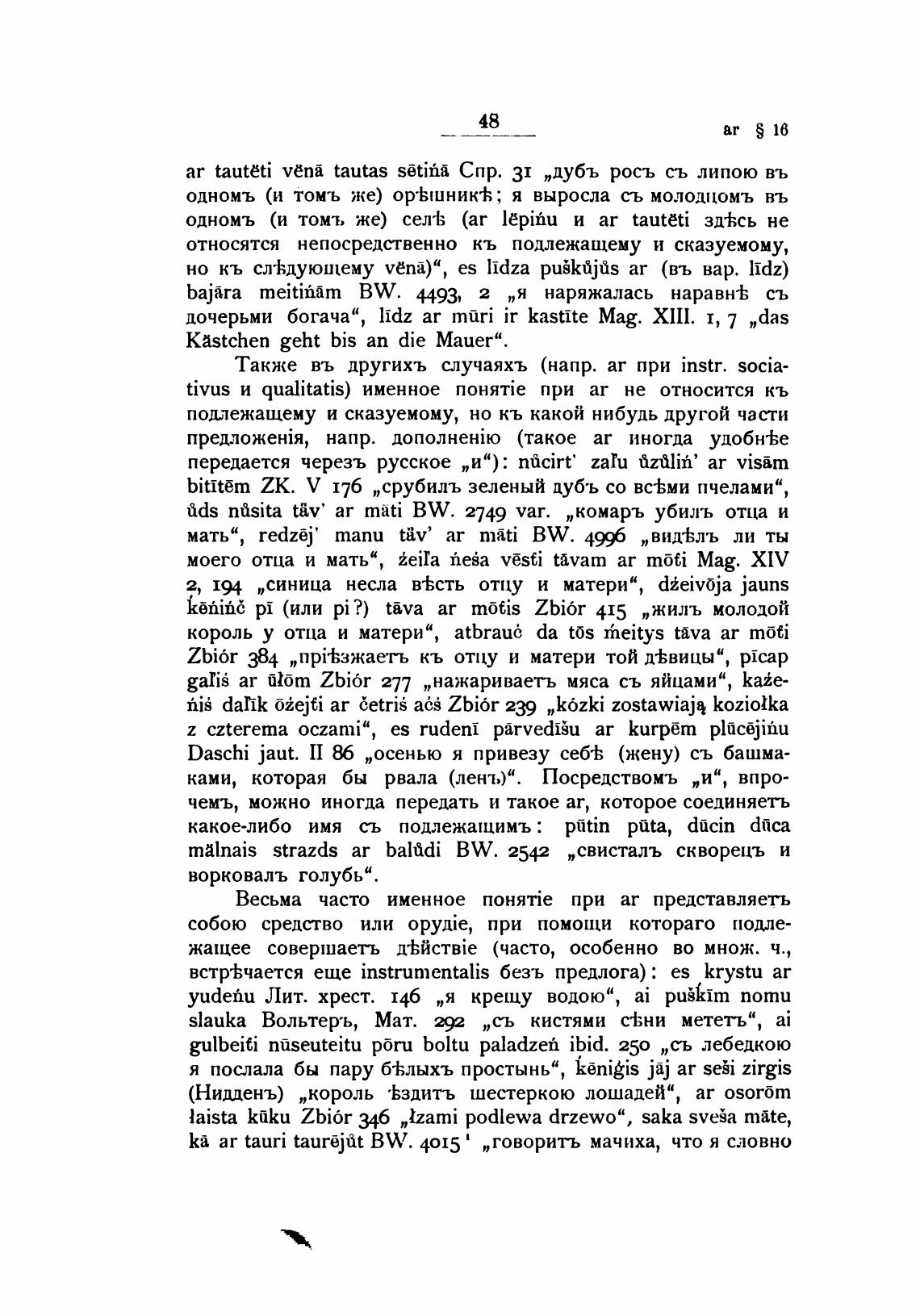 встр±чается еще instrumentalis безъ предлога) : es krystu ar