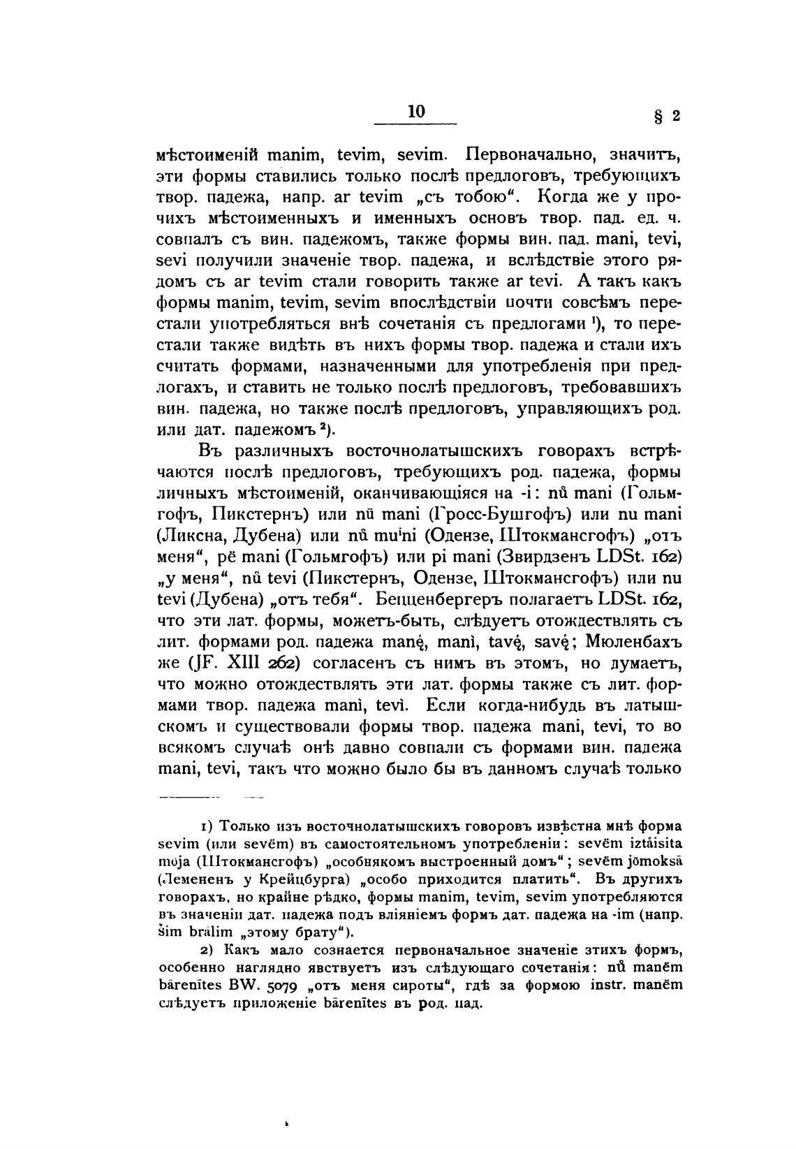 лит. формами род. падежа тапе, mani, tave, save; Мюленбахъ