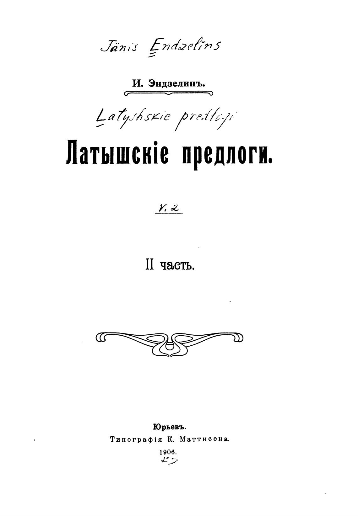 И. Эндзелинъ.
