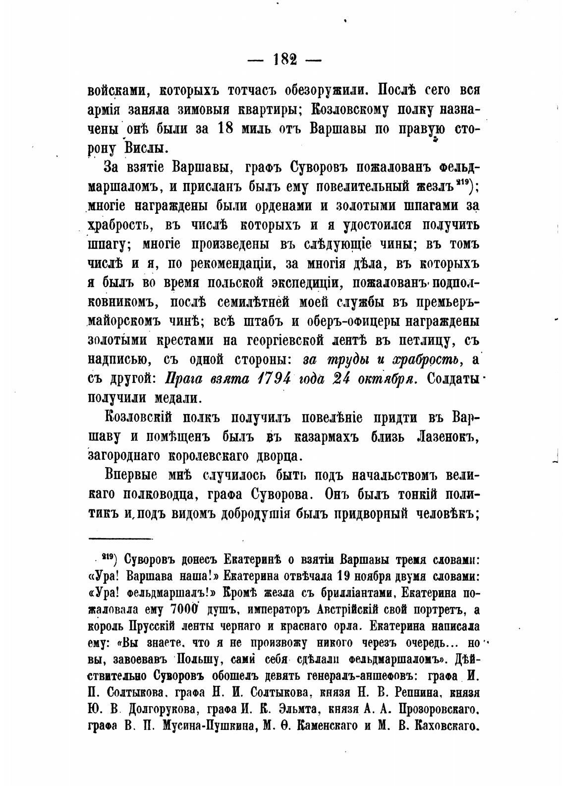 За B3HTie Варшавы, граФЪ Суворовъ пожаловань Фельд-