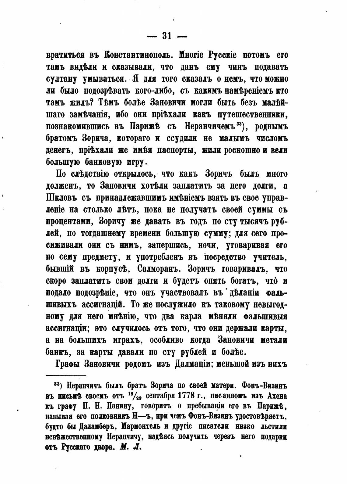 33) Неранчичъ быль брать Зорича по своей матери. Фонъ-Вивинъ