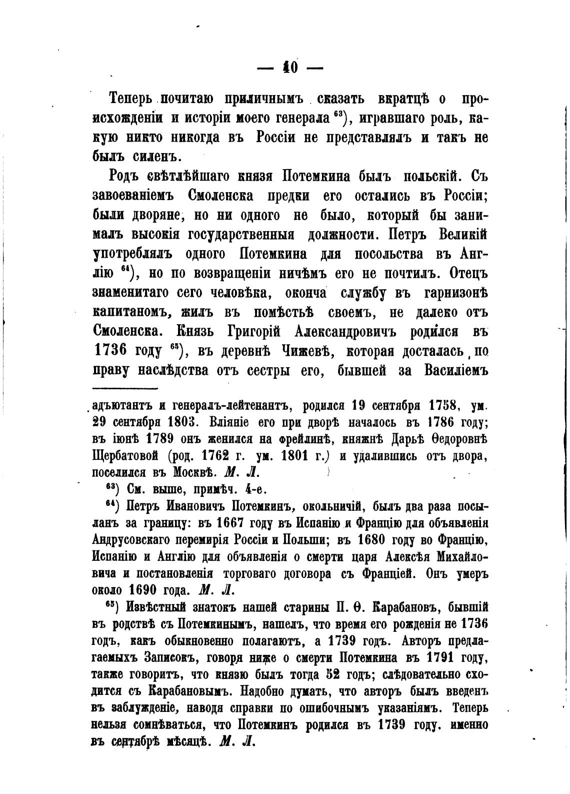 гаемыхъ Записокъ, говорд НИТе о смерти Потемкина въ 1791 году,