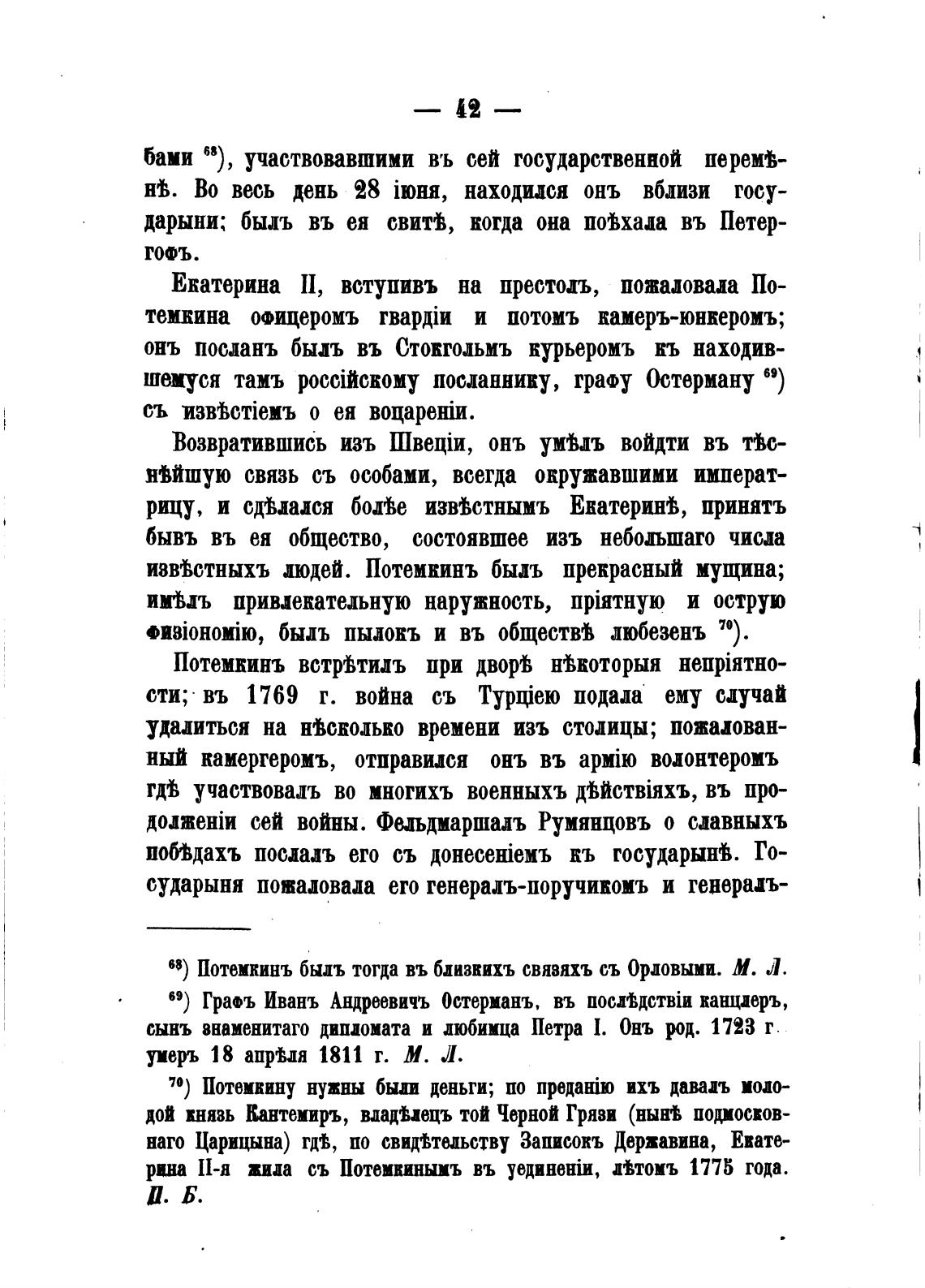 68) Потемкинъ быль тогда въ близкихъ связяхъ съ Орловыми. М. Л.