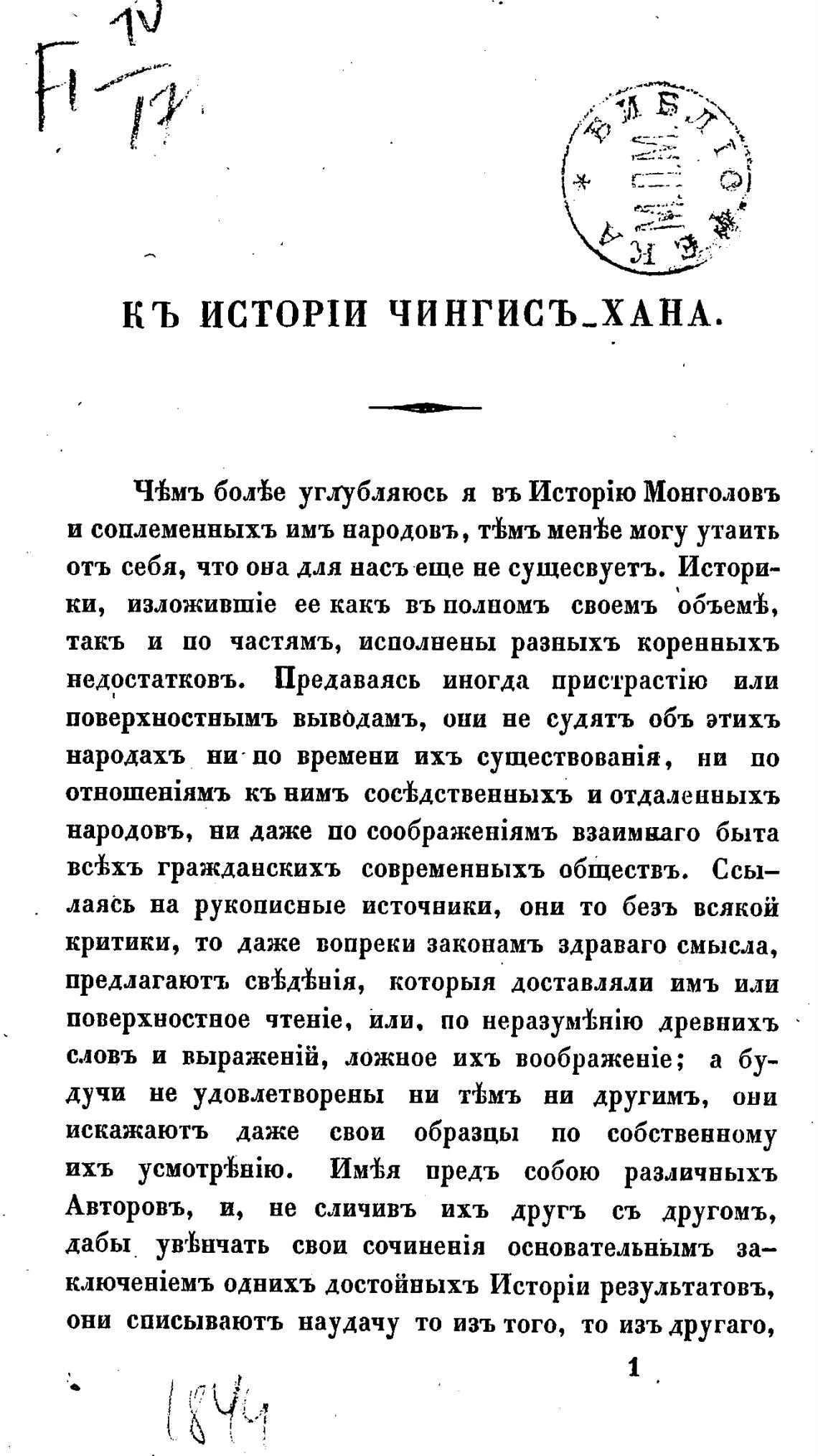 КЬ ИСТОРШ ЧИНГИСЪ-ХАНА.