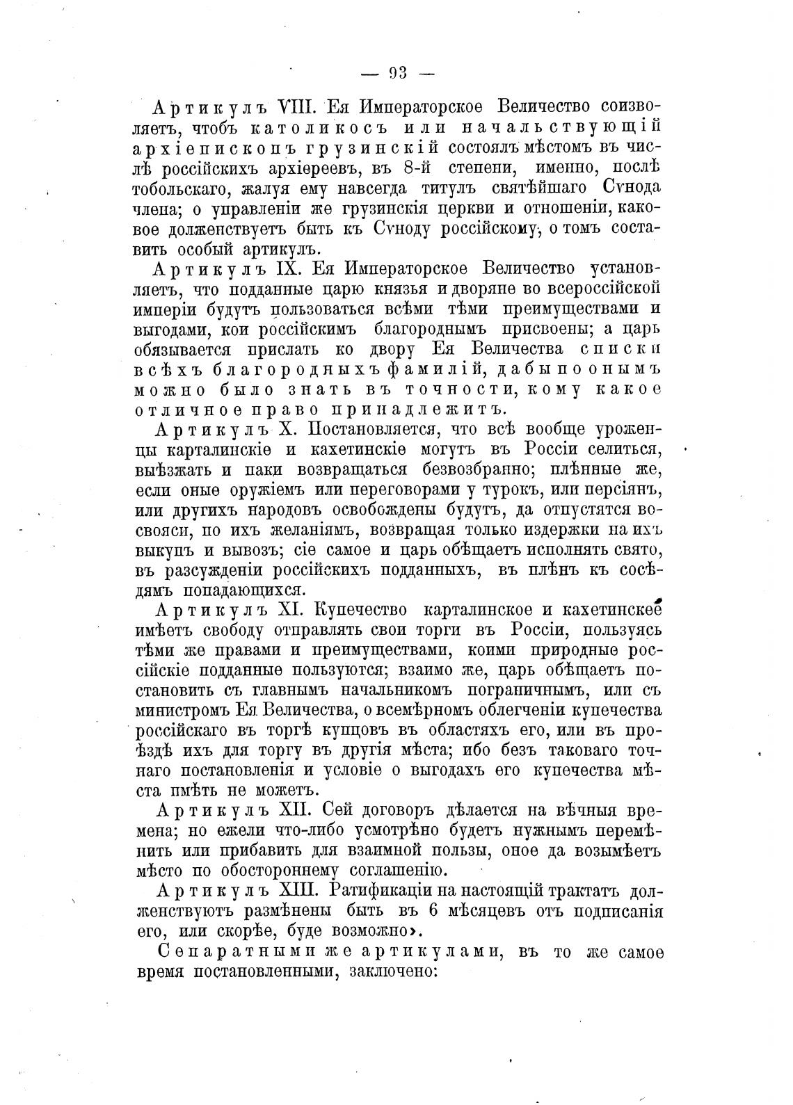 А р тик ул ъ XII. Сей договоръ деђлается на АЧНЫЯ вре-