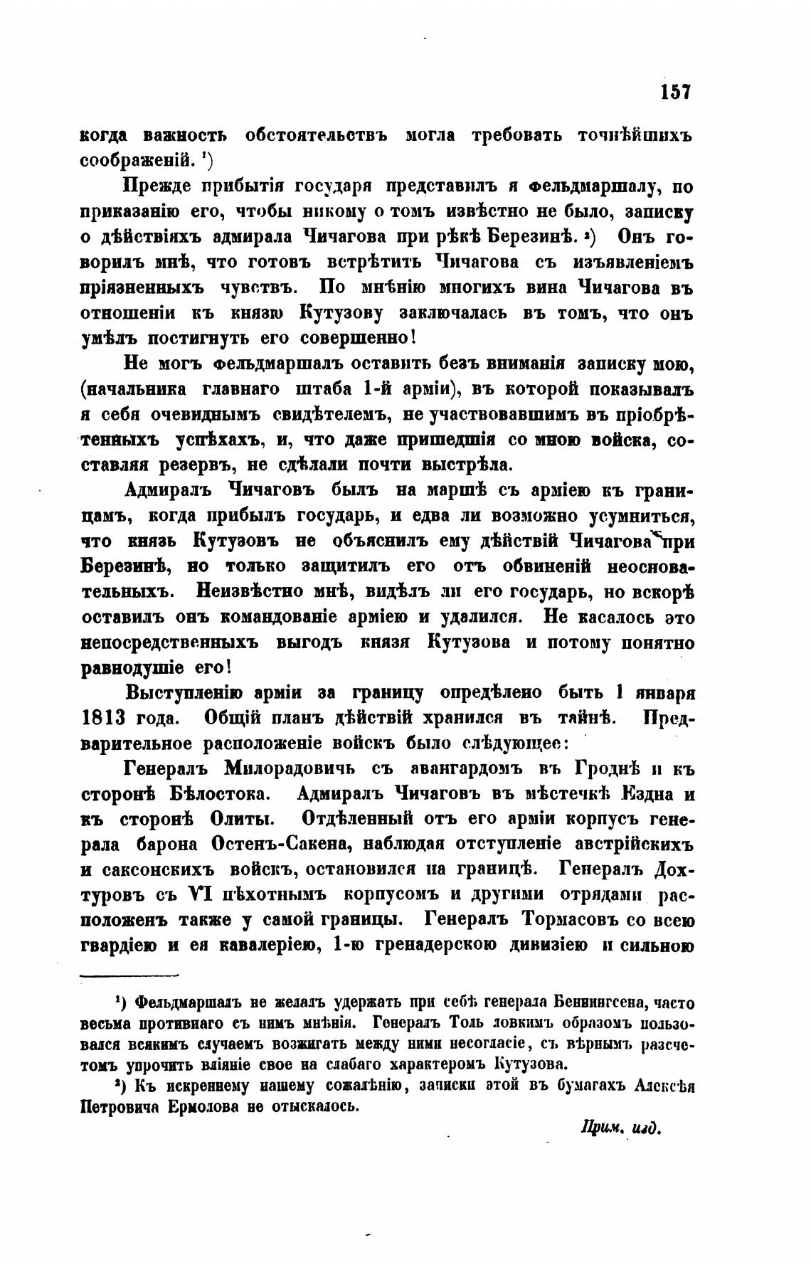 Не могъ Фельдмаршаль оставить безъ записку мою,