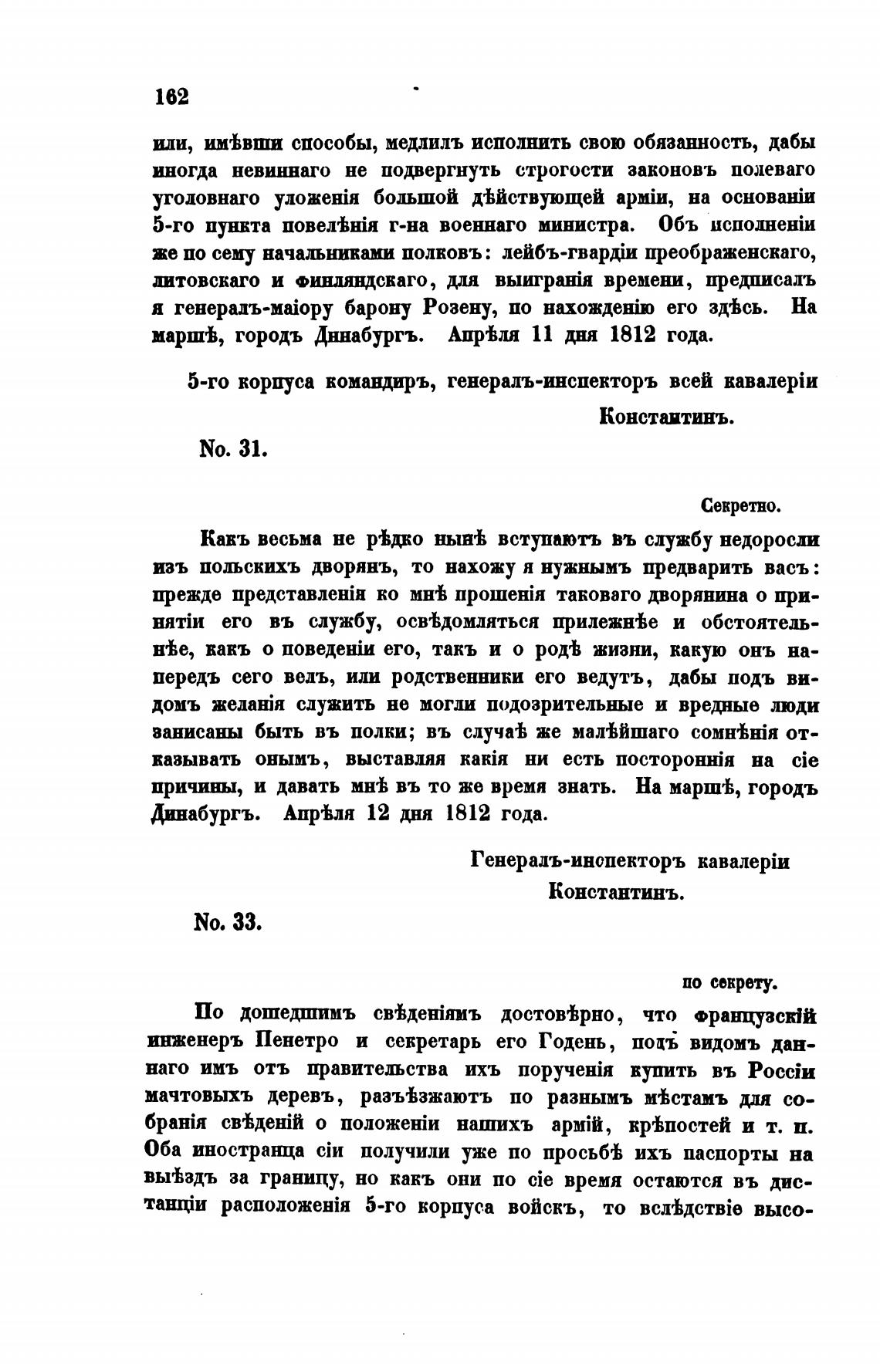 марпй, городь Дннабургъ. АпрВля 11 дня 1812 года.