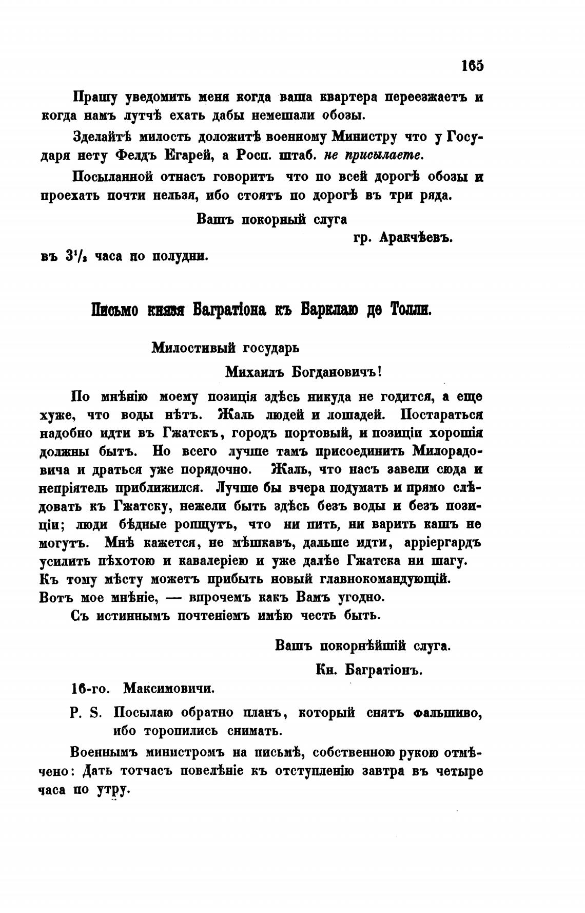 довать кь Гжатску, нежели быть ад%сь безъ воды и безъ пози-