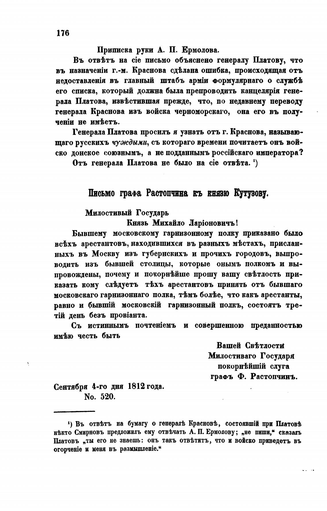 Письмо грап Растопчина въ ЕНОЮ Еутувову.