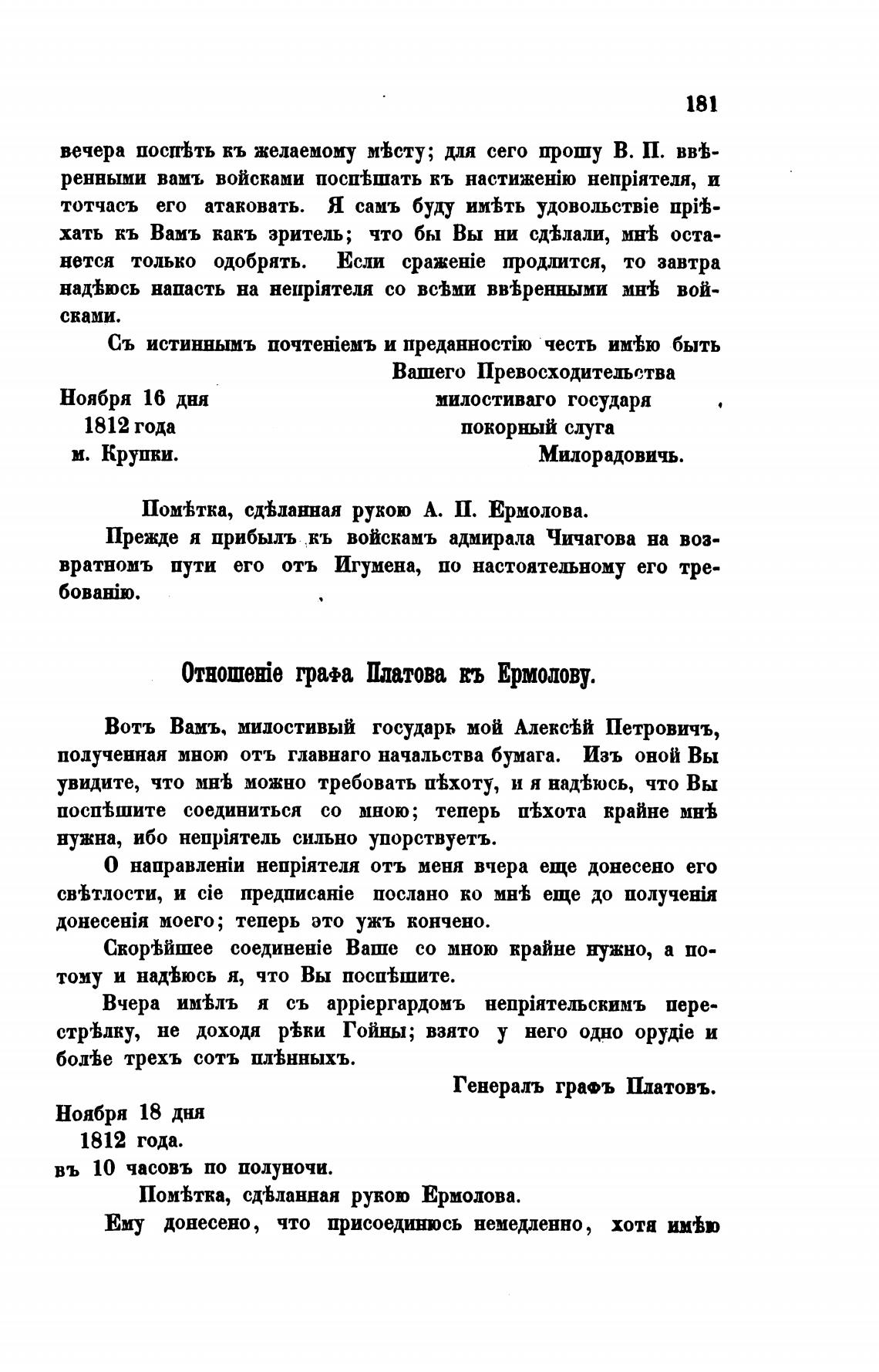 ОтношеЈе грап Платова въ Ермолову.