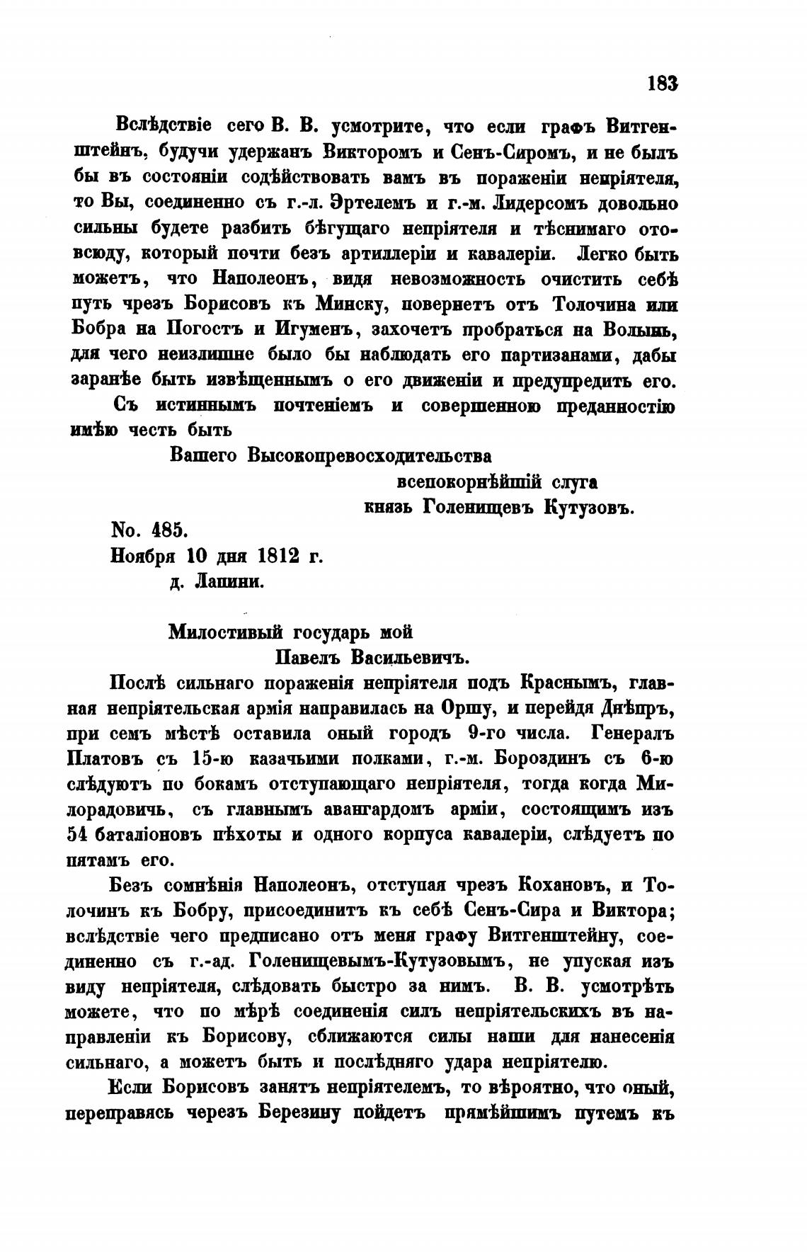 Bcxh;xcTBie чего предписано отъ меня графу Витгенштейну, сое-