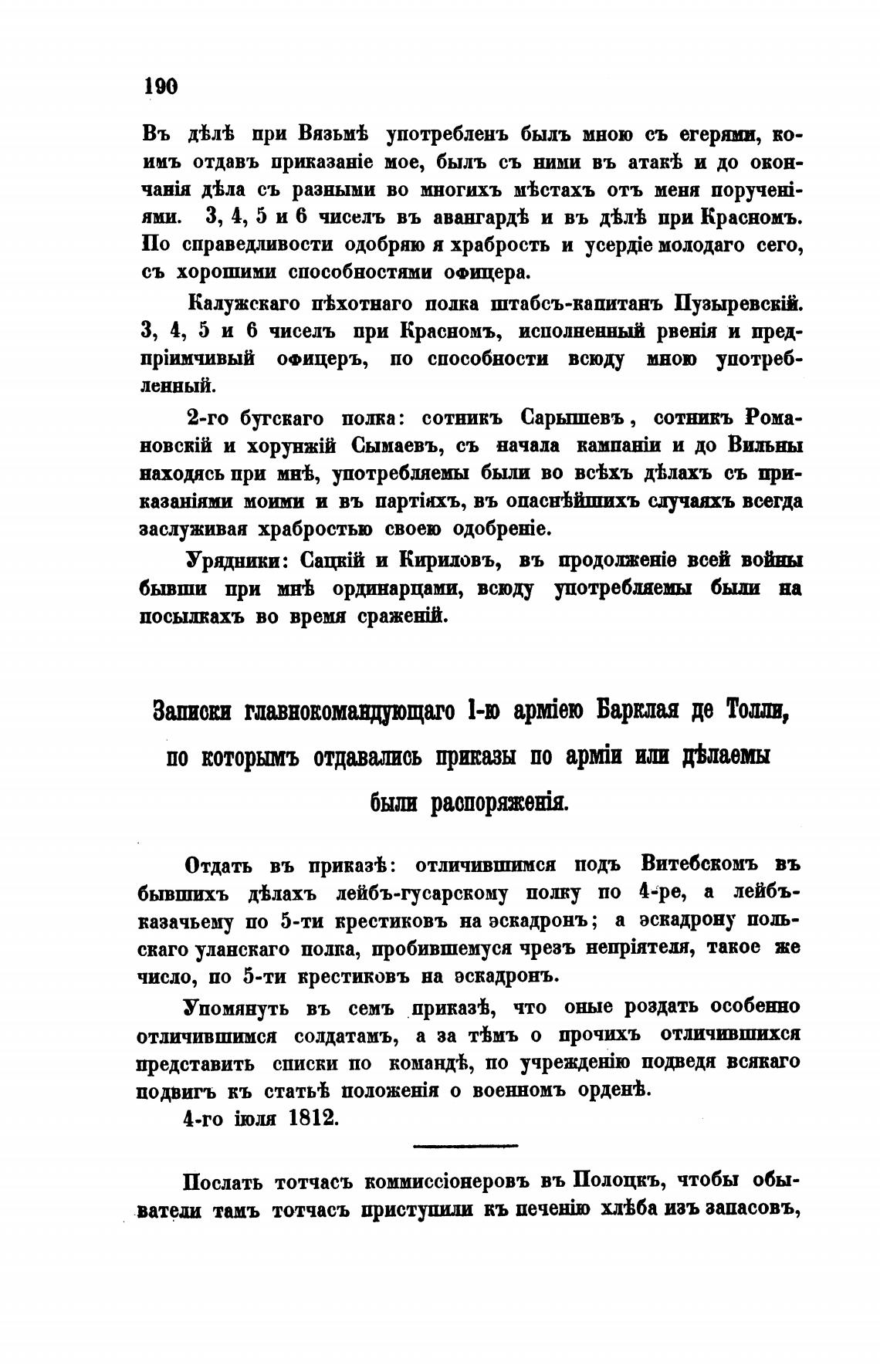 Запил гпавновомандрщаго 1-ю Барклая де Тот,