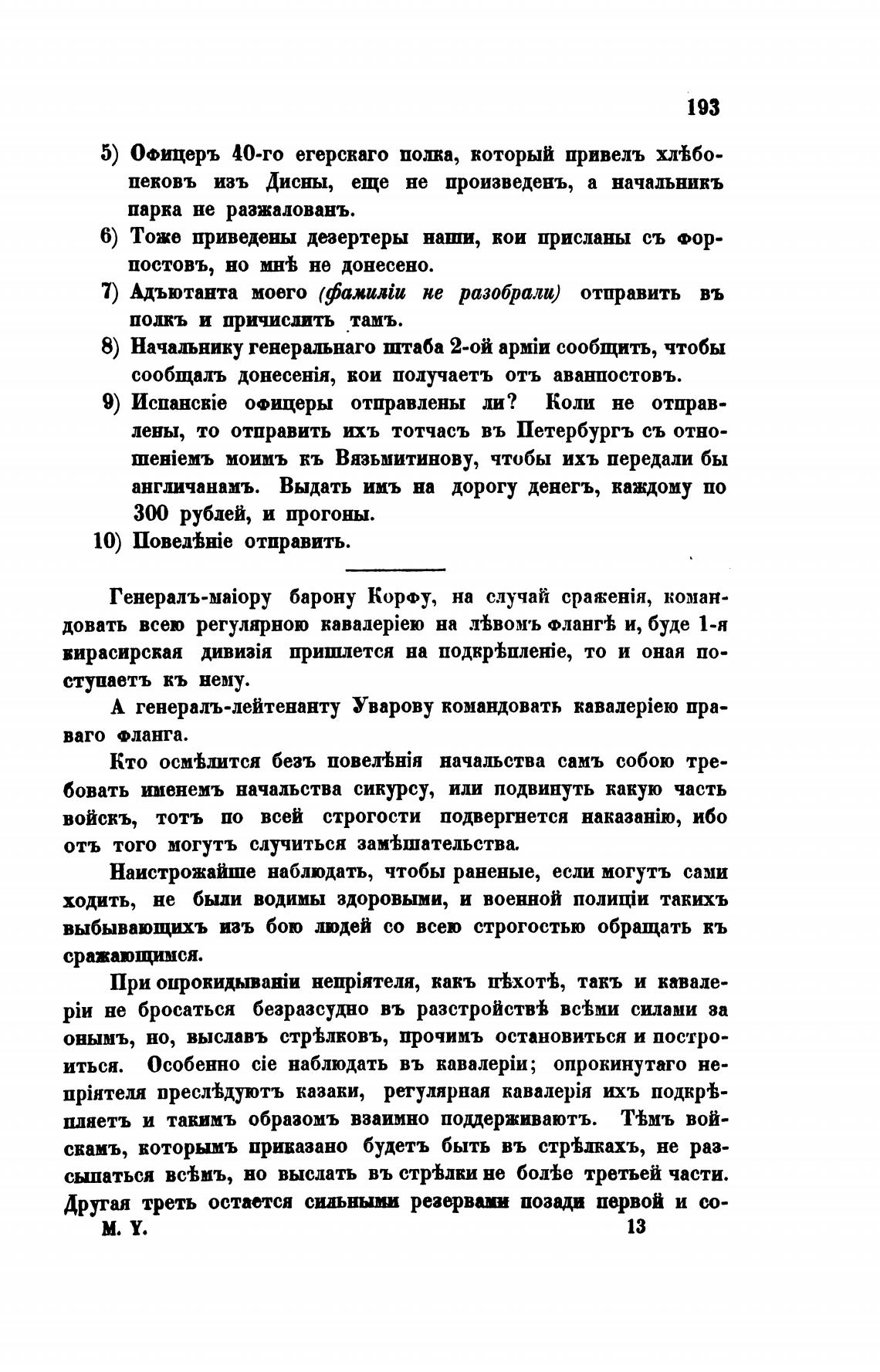 А генералъ-лейтенанту Уварову командовать пра-