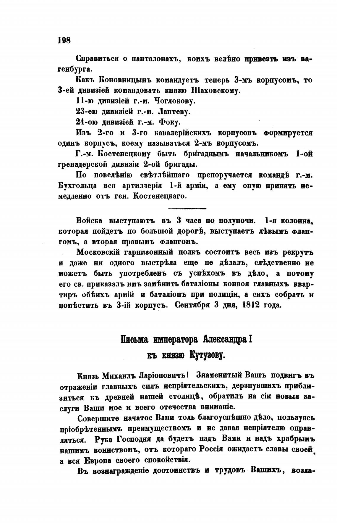пом'Ьстить въ 3-il корпусъ. Сентябри З дня, 1812 года.