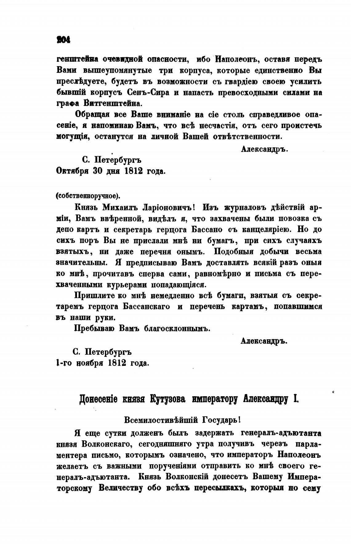 Донесеје ЕНЯВЯ Кутузова пшератору Алексанпу 1.