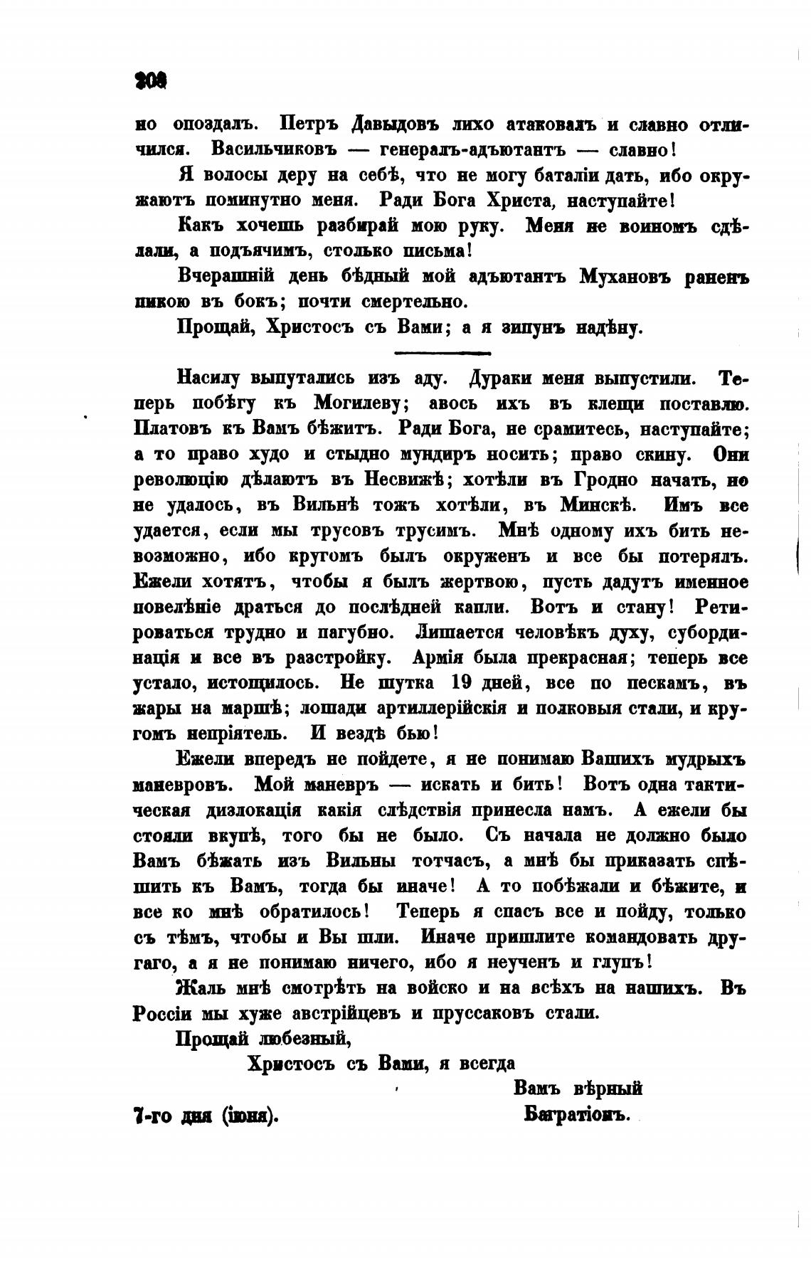 Платовъ кь Вамъ б%житъ. Ради Бога, не срамитесь, наступайте;