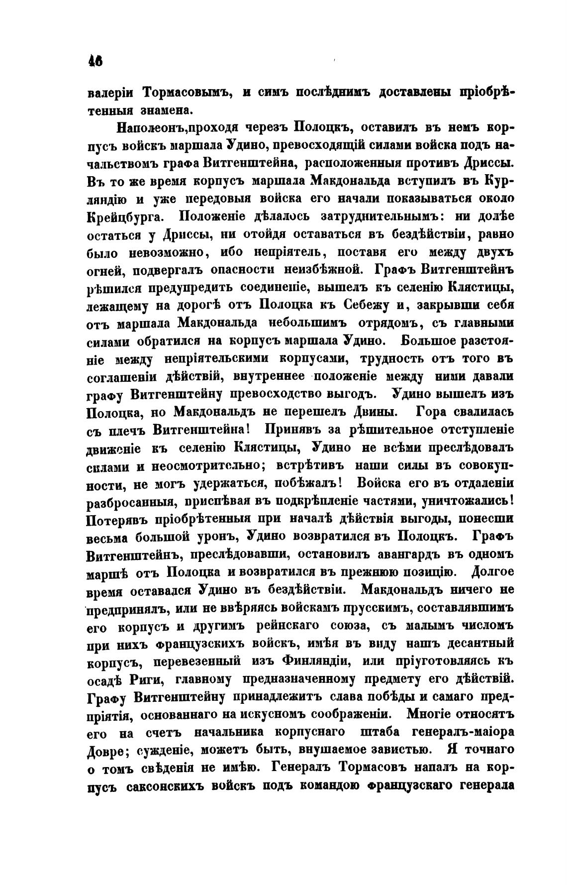 Витгенштейнъ, пресАдовавши, остановилъ авангардъ въ одномъ