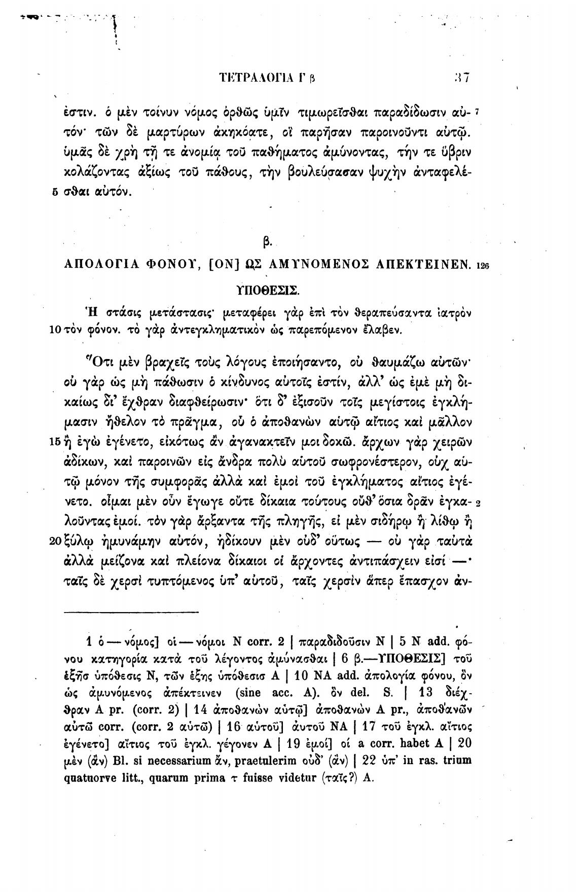 АПОЛОГIА (l)0NOY, [0N] AMYNOMEN02 АПЕКТЕ11ЧЕг•Ч.