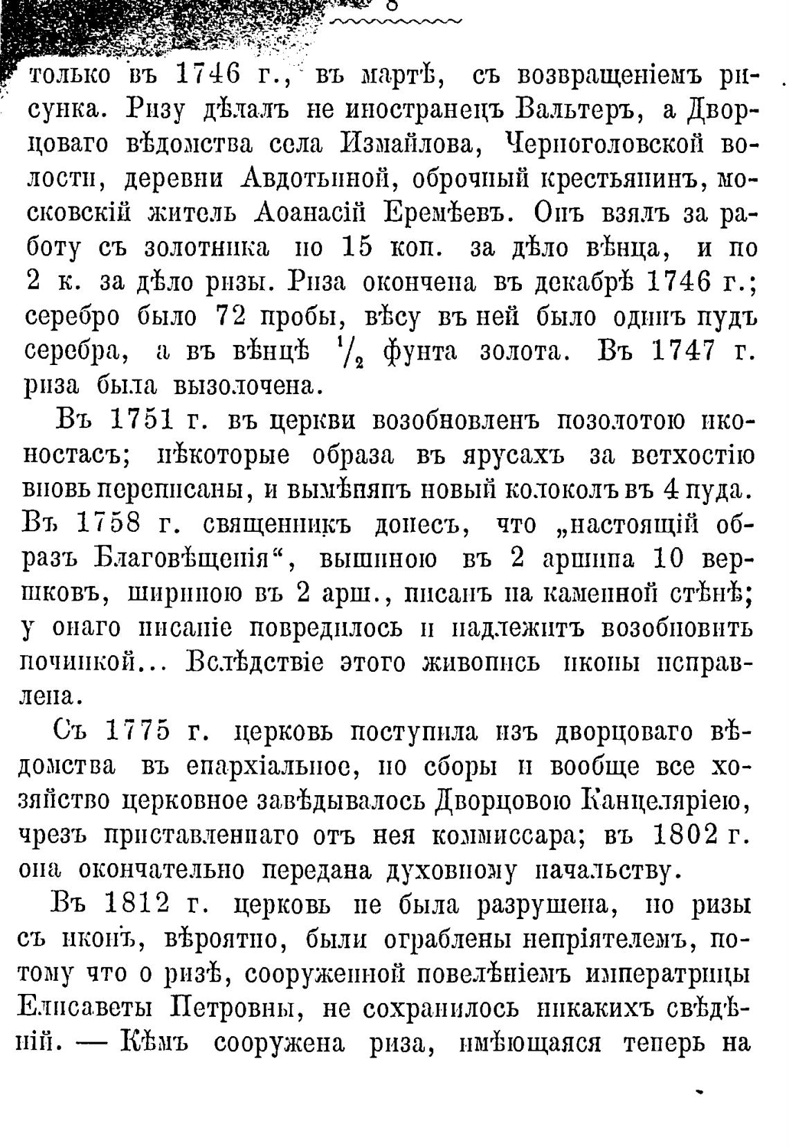 Въ 1812 г. церковь пе была разрушена, по ризы