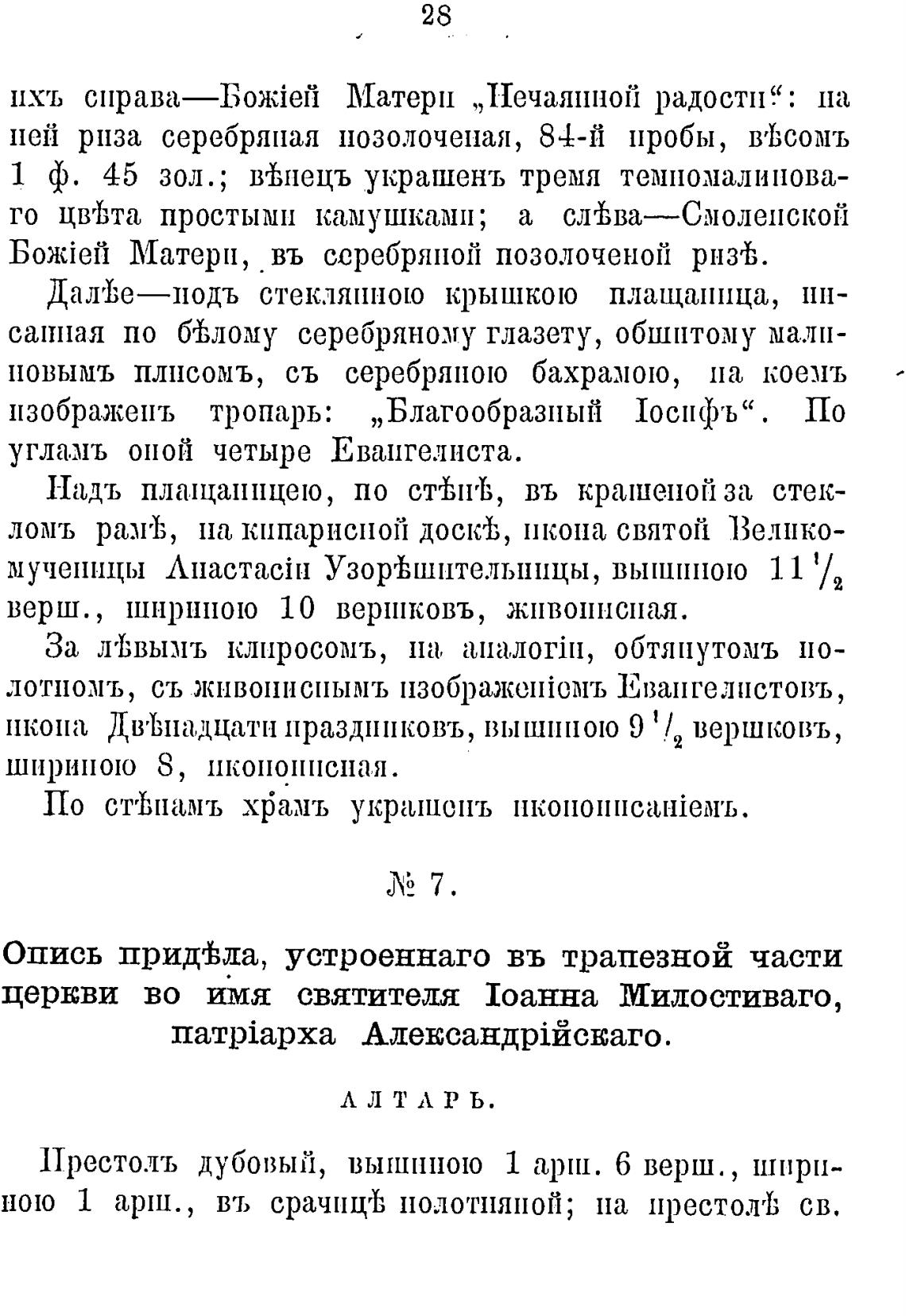 ною 1 арш., въ срачпщЬ ПолотняноЙ; на престолтђ св.