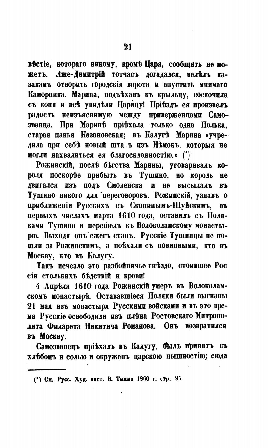 рю. Выходя онъ сжегъ стань. Pycckie Тушинцы не по-