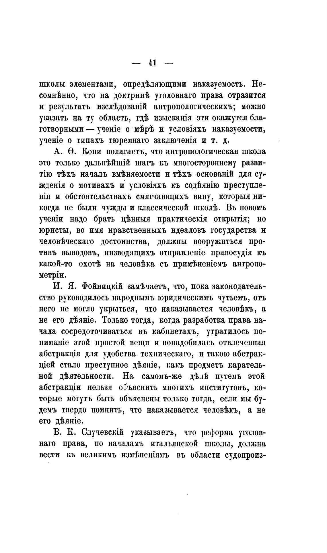 А. е. Кони полагаетъ, что антропологическая школа