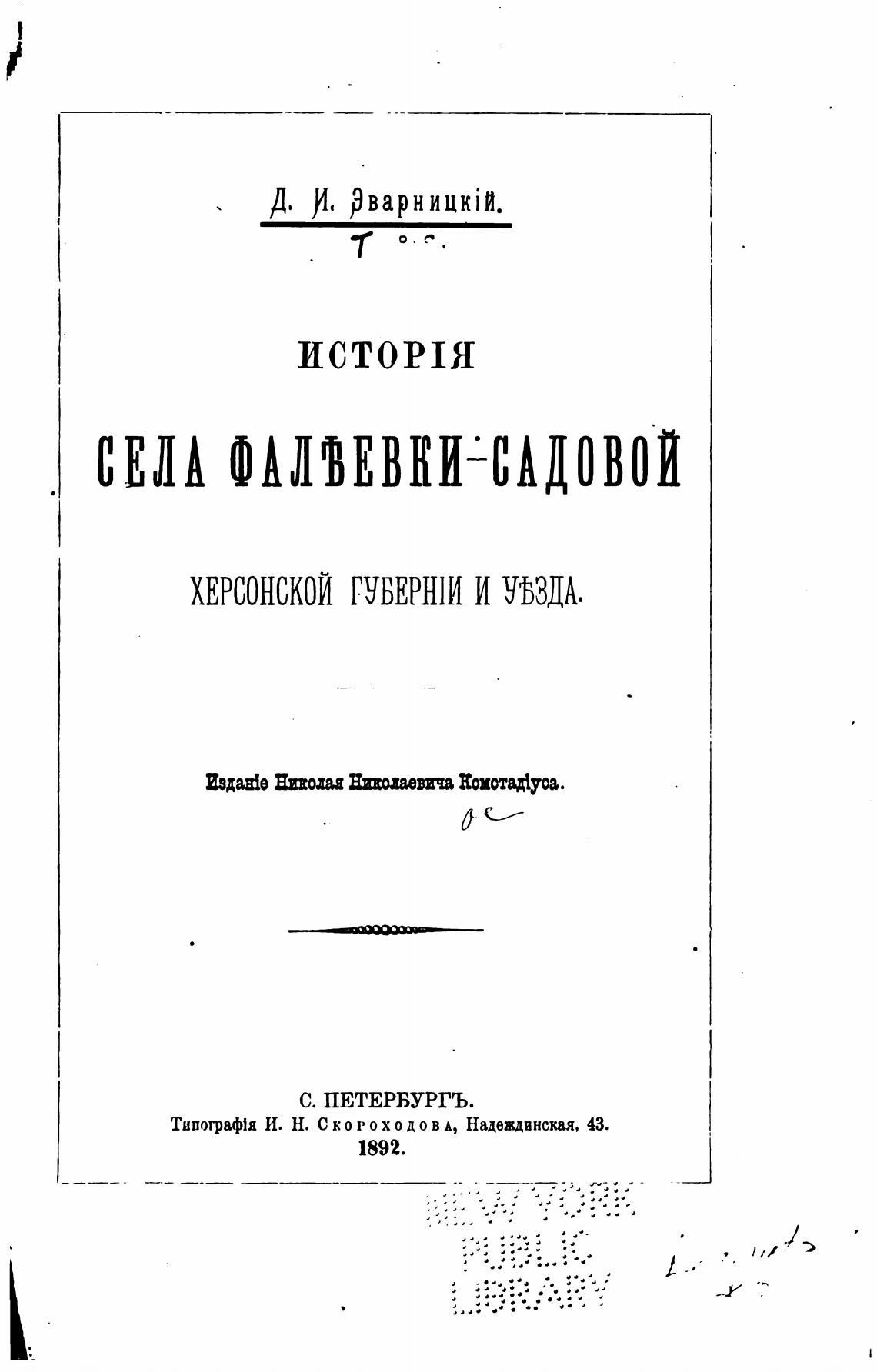 Типограф\я И. Н. С КОР д о В А, Надеждвнская, 43.