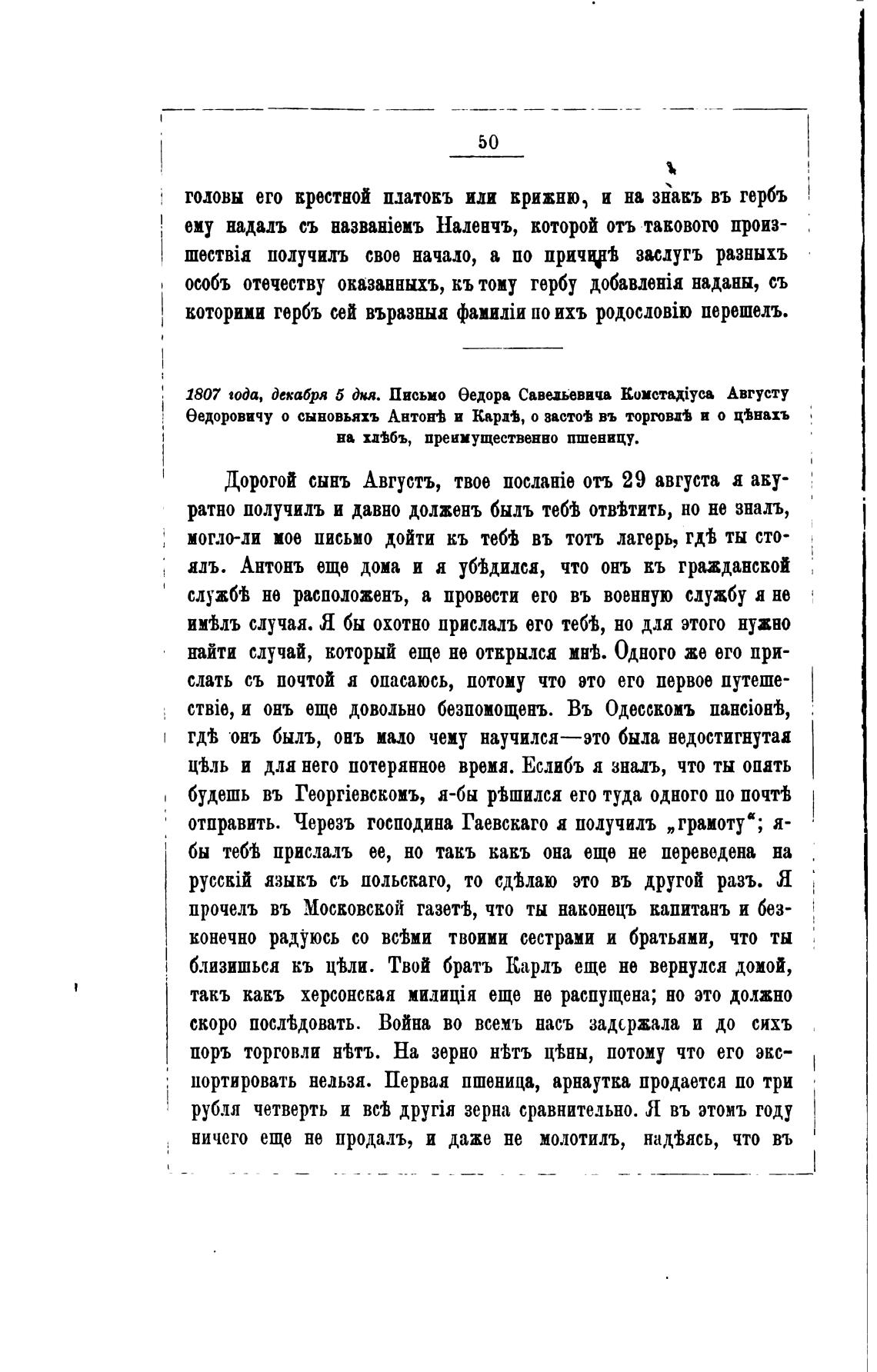 1807 toda, Декабря 5 Ди. Письмо еедора Савиьевичв Комстајуи Августу