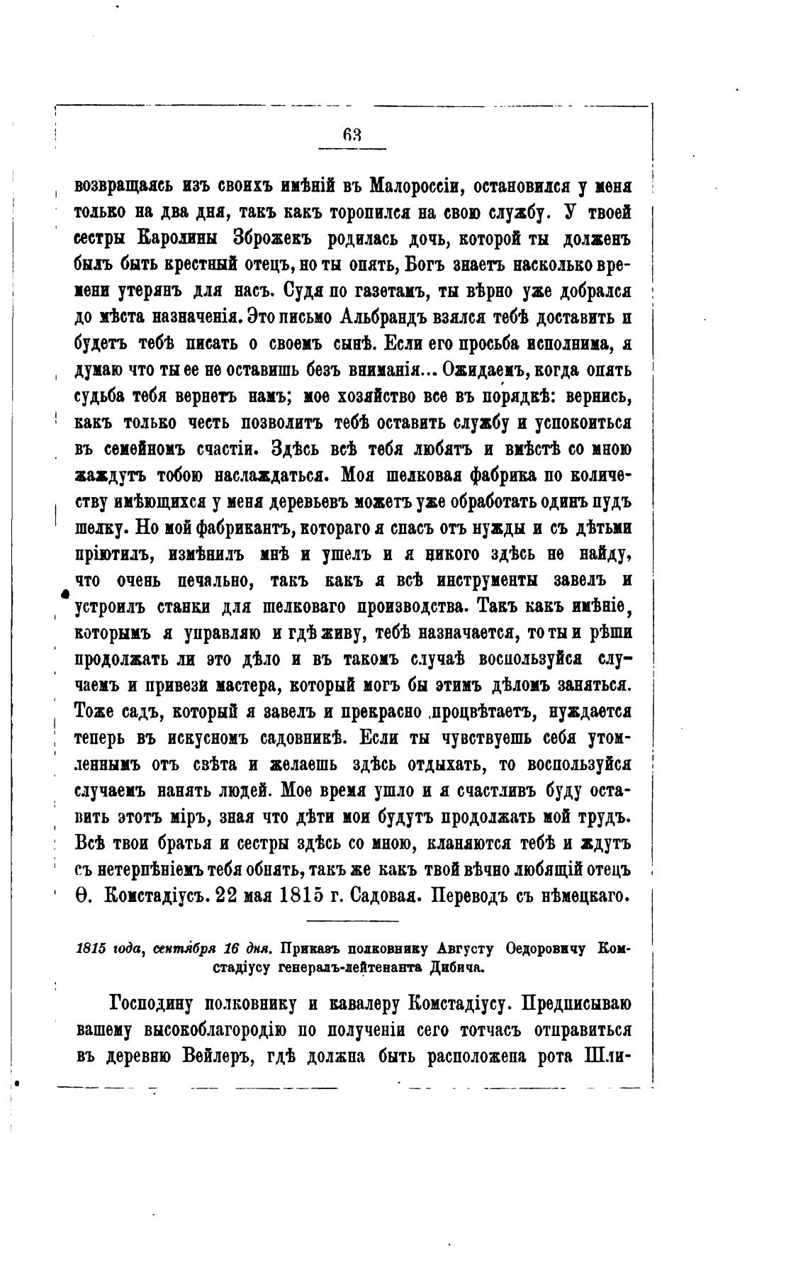 Э. 22 маа 1815 г. Садовая. Переводъ съ