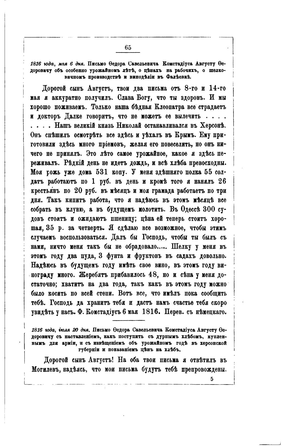 1816 сода, '•юля Т дм. Письмо еедора Савельевича Комстајусв Августу Ое-