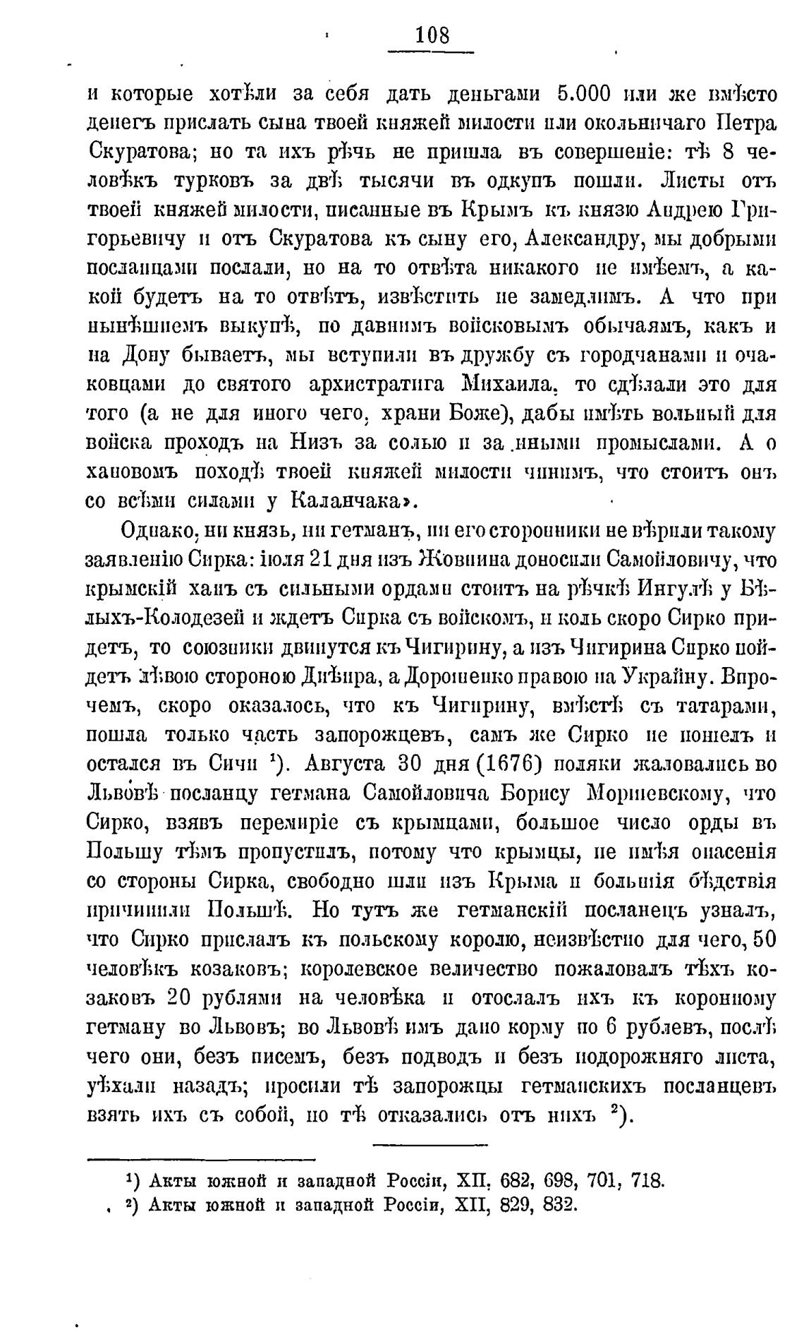 Сирка: 21 дня изъ Жовнина доносИли Самойловичу, что