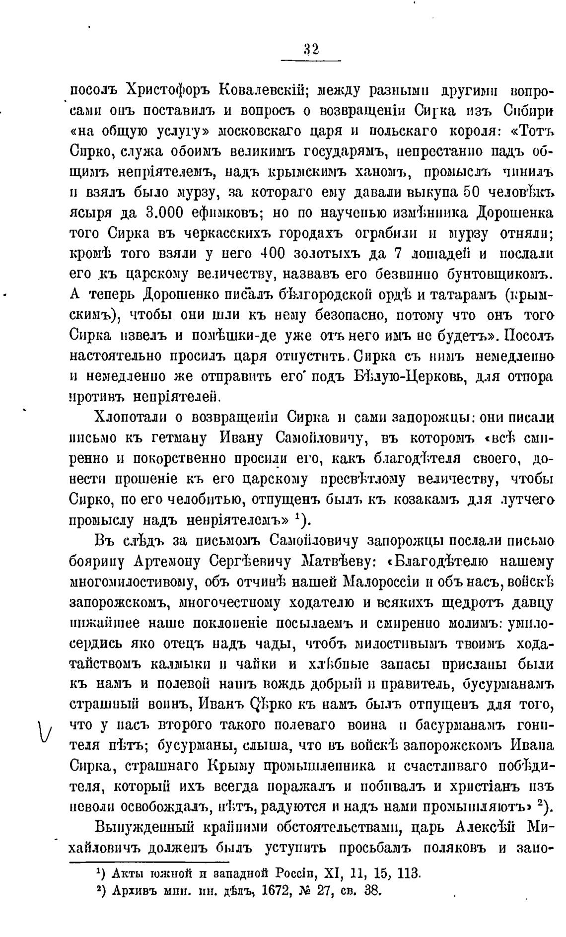 2) Архивъ мин. пн. Д'Ьлъ, 1672, 27, св. 38,