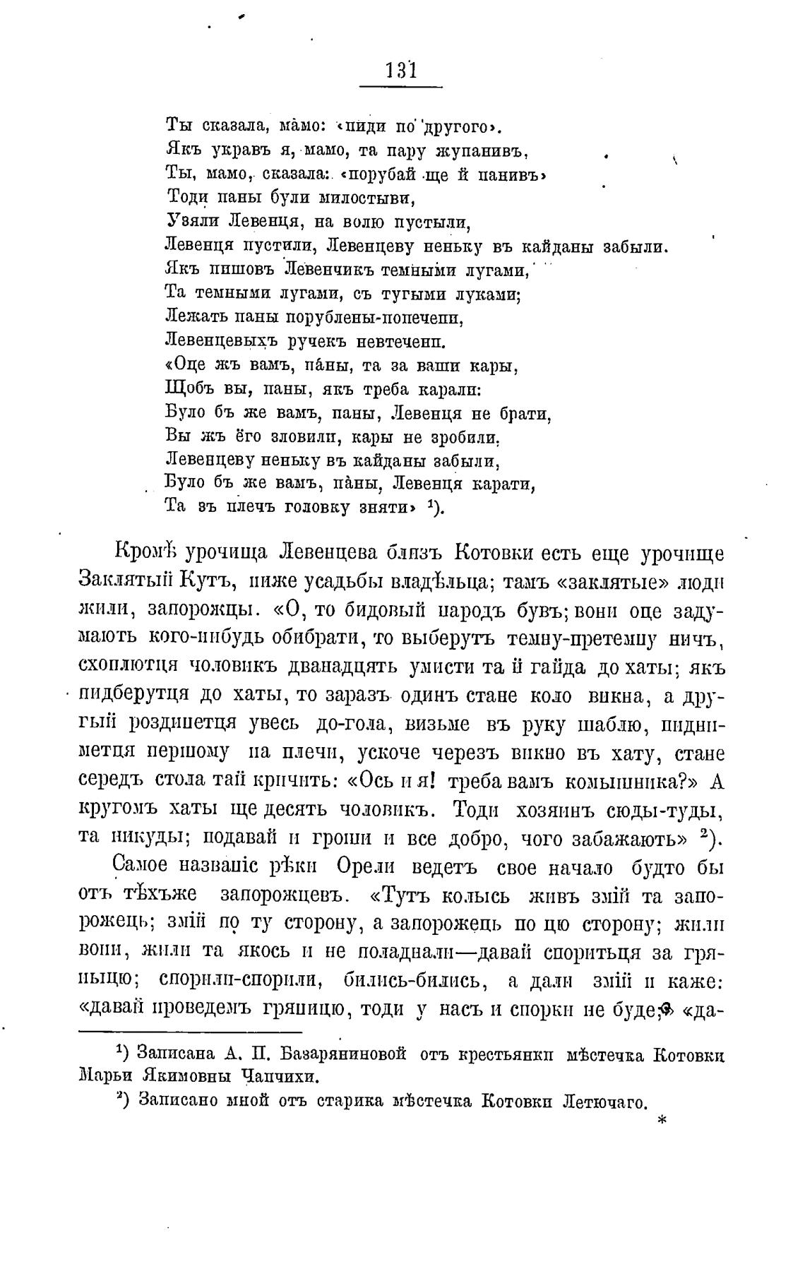 2) Записано мной отъ старика мъстечка Котовкп Летючаго.