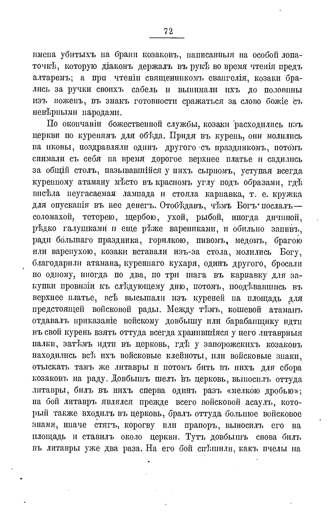 церкви по куренямъ для обТ;да. Придя въ курень, они молились