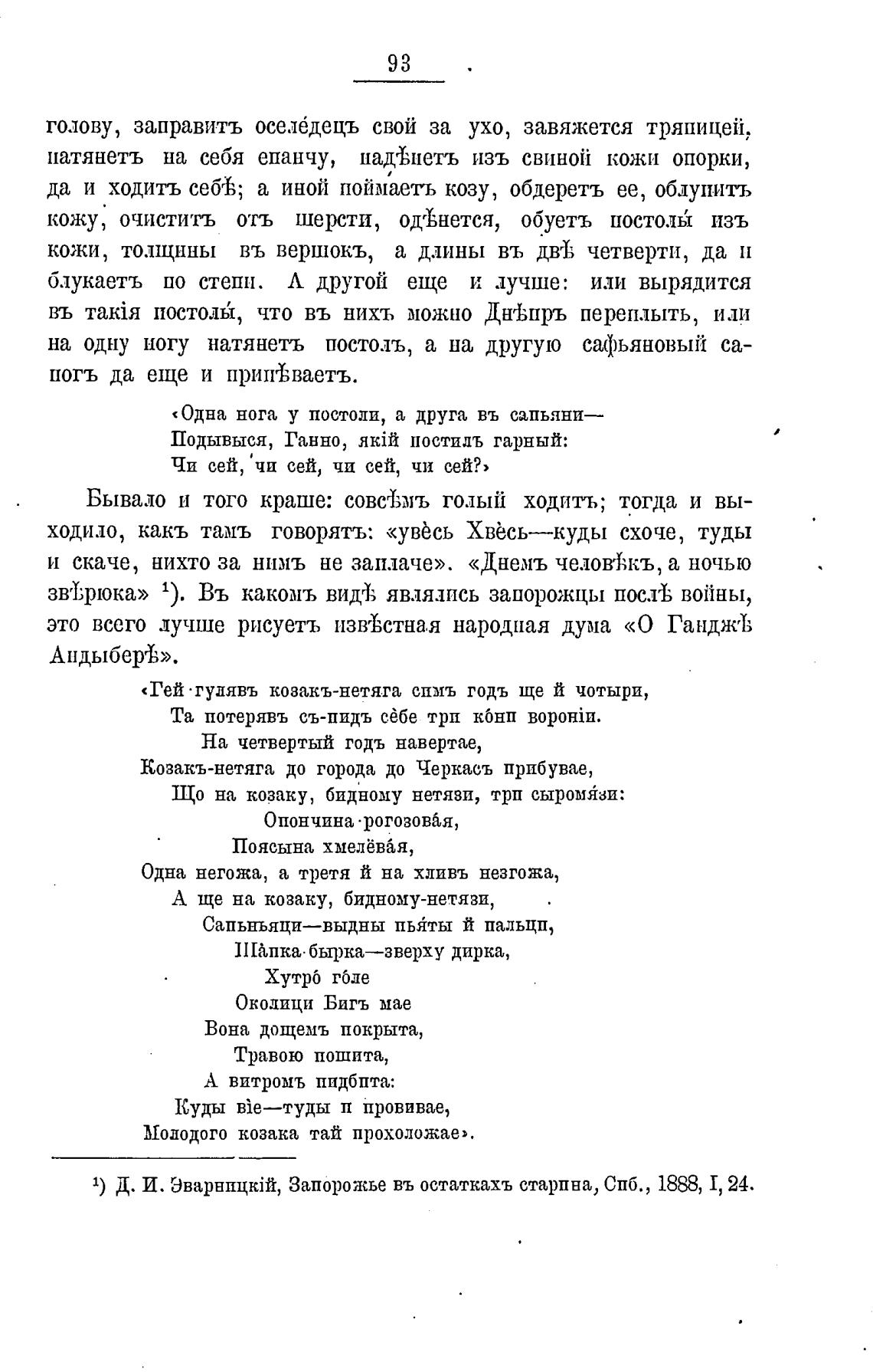 1) Д. И. Запорожье въ остаткахъ старпна, СПб. , 1888, Г, 24.