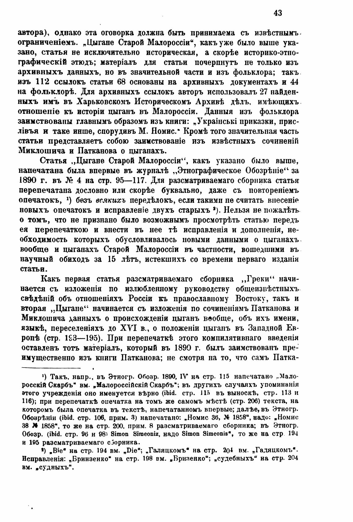 вторая , Цыгане” начинается съ изложенЈя по сочиненјямъ Патканова и