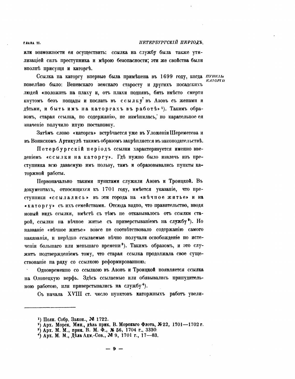 Ссылка на каторгу впервые была примТиена въ 1699 году, когда пункт