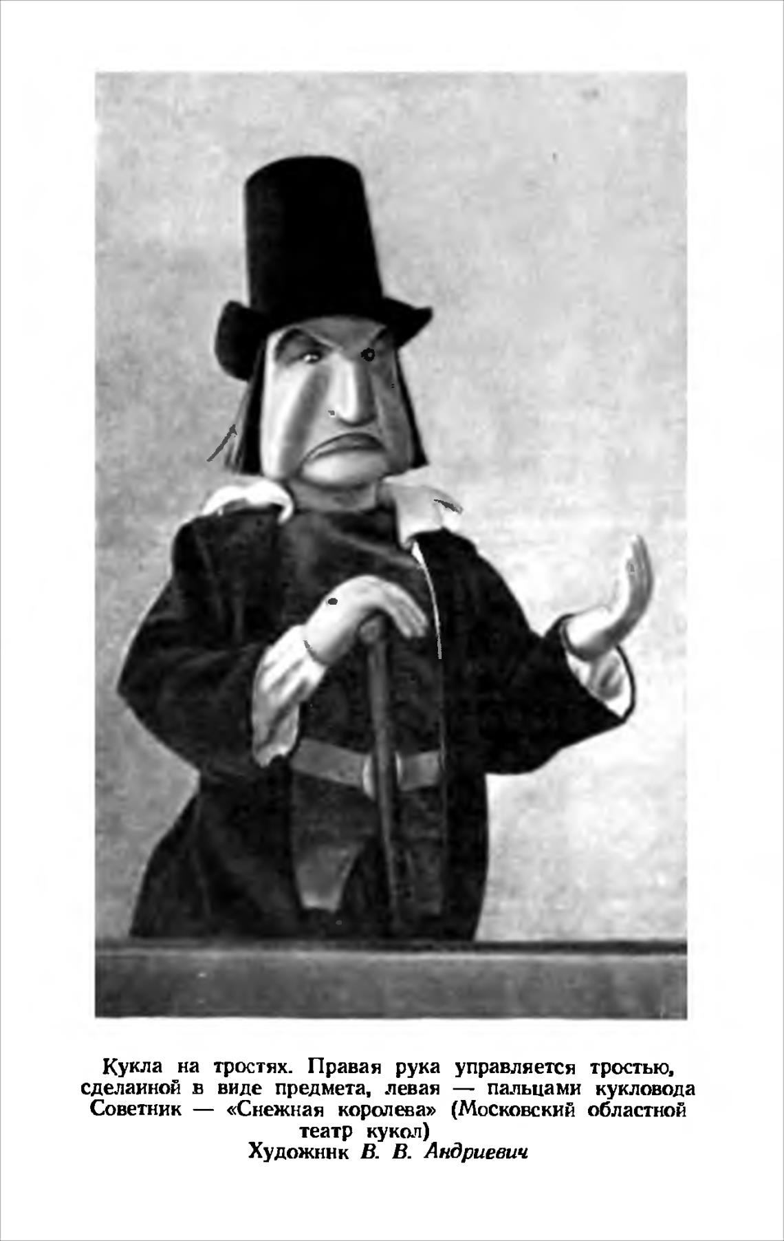 Кукла на тростях. Правая рука управляется тростью,